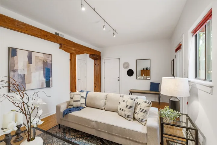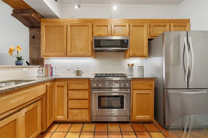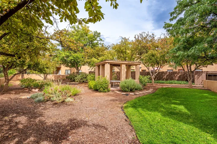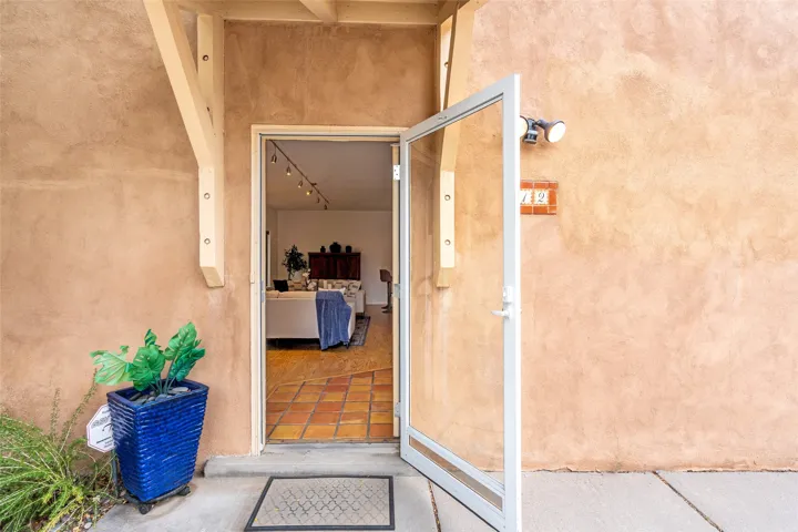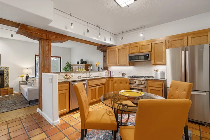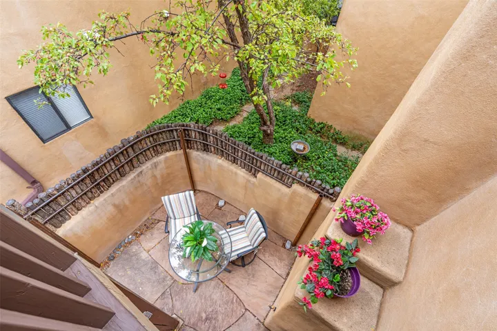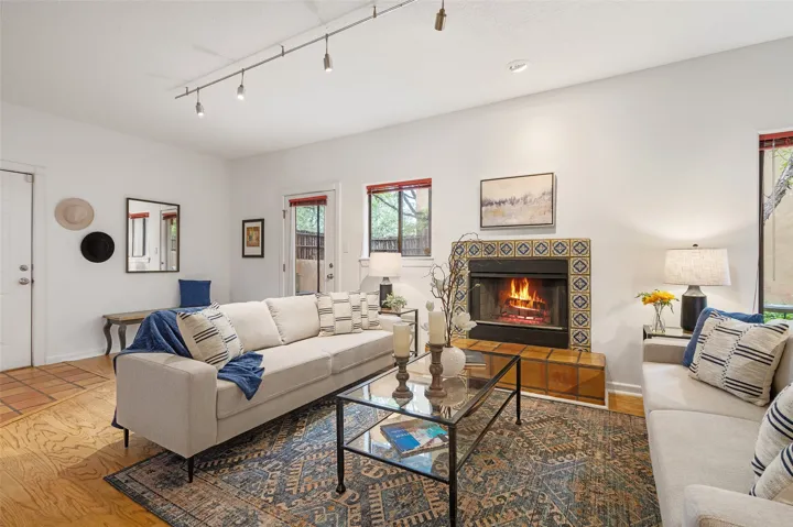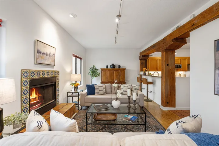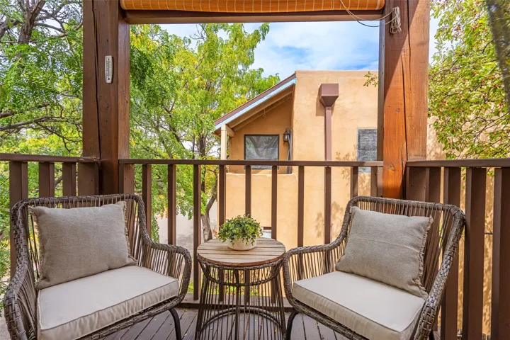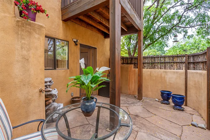 Tucked into the Westside/Guadalupe Historic District neighborhood, is a quiet, private condo compound just five minutes to the Railyard, Farmerās Market, Sky Cinemas, dining, and galleriesāmaking every day feel like a Santa Fe adventure. This 2-bed, 3-bath home blends charm with thoughtful updates. The living area is highlighted by vigas and beams that evoke timeless Southwest charm. The kitchen features a Wolf gas stove, stainless steel appliances, stylish under-cabinet lighting, silestone countertops and ample storage with a backsplash and microwave installed in 2023. A cozy fireplace, central air, and newer Skuttle humidifier bring year-round comfort. Enjoy the flagstone patio off the living area enclosed by stucco, newer coyote fencing and a newer gate, plus a deck off the primary suite for relaxing sunsets. Additional perks include tub/tile/faucets installed 2023 in the guest bath, a one-car garage with high ceilings and storage shelves, a laundry area, and a prime location in the heart of the Railyard. Bring Santa Feās best right to your doorstep.