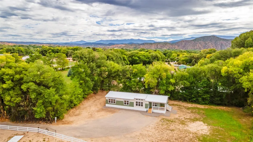 Brand new double wide sitting in a cozy spot in beautiful Chimayo directly across from the Arboleda Center. This 3 bedroom, 2 bathroom home is turn key and ready for its first family to move in. The property comes with water rights as well. Permanent foundation, deactivated title, bank financeable. Seller will be reviewing all offers on Friday, 10/3/25 at noon. Check out the pictures, watch the video, and schedule your tour!