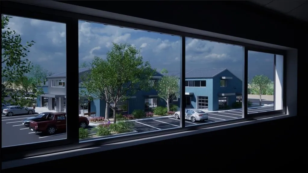 Designed with an industrial aesthetic, The Studios offer open, light-filled spaces with contemporary touches that create an inspiring environment for business. Each unit spans nearly 1,677 square feet, including 1,587 square feet of interior space (“walls in”), and features tall ceilings, large aluminum glass roll-up garage doors, expansive storefront windows, and finished concrete floors. Inside, you’ll find LED lighting, handcrafted steel staircases with wood treads, and smooth drywall finishes. The ground floor encompasses 1,092 square feet, while the second story adds 584 square feet.