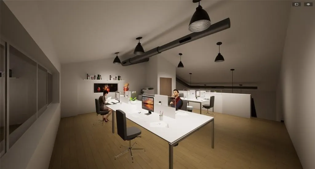 Designed with an industrial aesthetic, The Studios offer open, light-filled spaces with contemporary touches that create an inspiring environment for business. Each unit spans nearly 1,677 square feet, including 1,587 square feet of interior space (“walls in”), and features tall ceilings, large aluminum glass roll-up garage doors, expansive storefront windows, and finished concrete floors. Inside, you’ll find LED lighting, handcrafted steel staircases with wood treads, and smooth drywall finishes. The ground floor encompasses 1,092 square feet, while the second story adds 584 square feet.