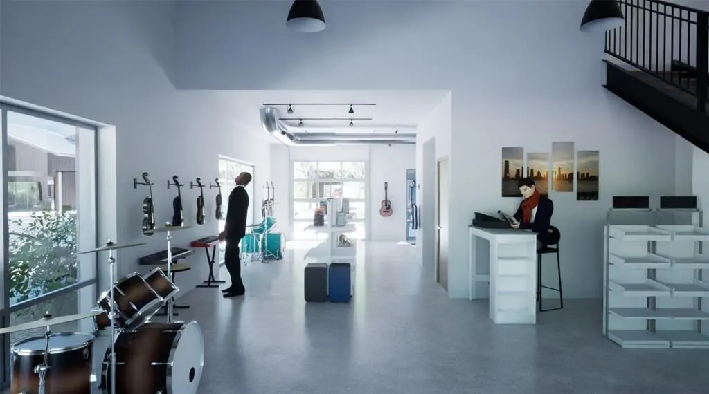Designed with an industrial aesthetic, The Studios offer open, light-filled spaces with contemporary touches that create an inspiring environment for business. Each unit spans nearly 1,677 square feet, including 1,587 square feet of interior space (“walls in”), and features tall ceilings, large aluminum glass roll-up garage doors, expansive storefront windows, and finished concrete floors. Inside, you’ll find LED lighting, handcrafted steel staircases with wood treads, and smooth drywall finishes. The ground floor encompasses 1,092 square feet, while the second story adds 584 square feet.