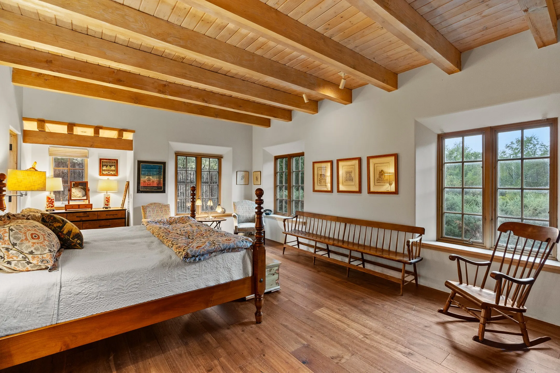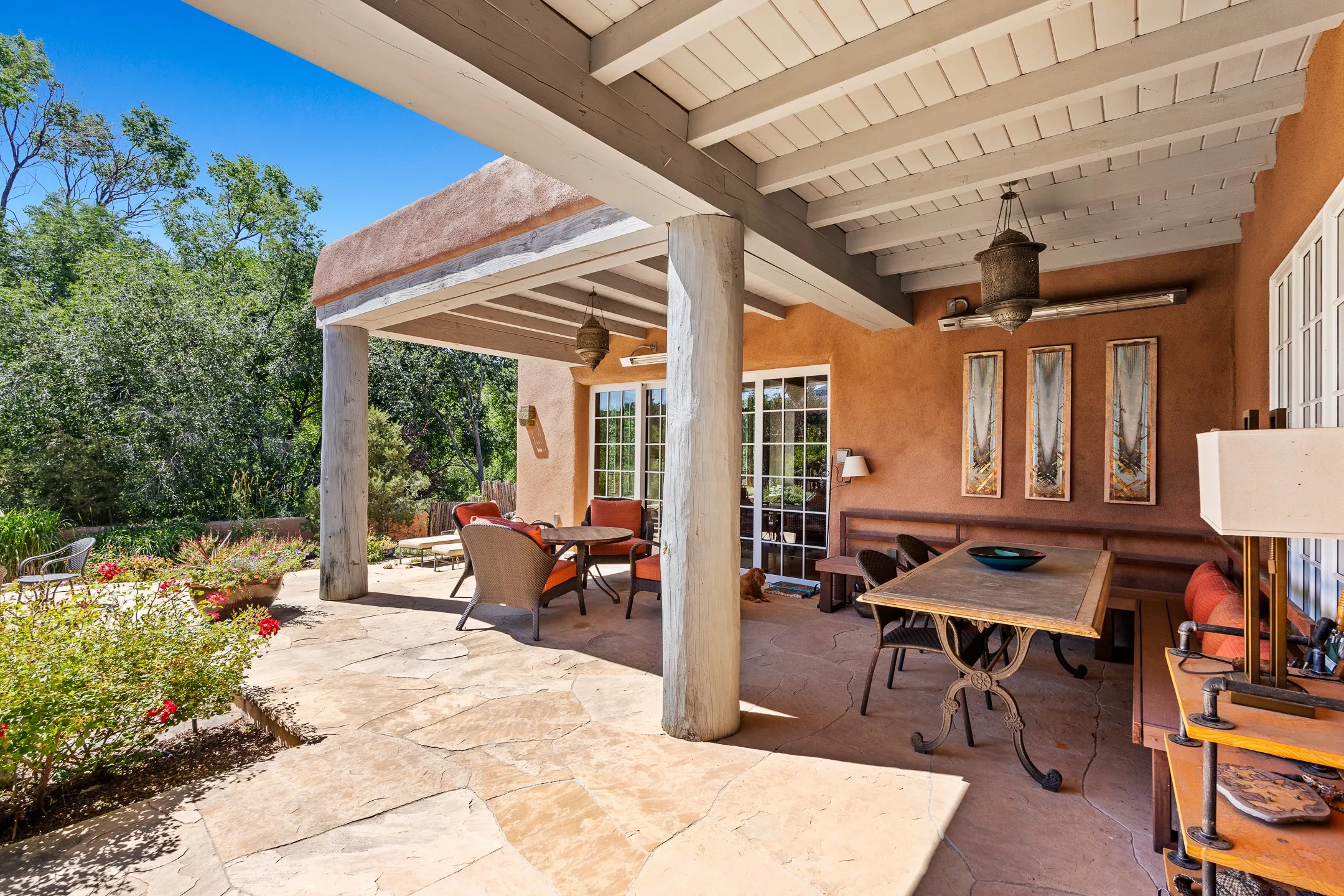 Nestled on just under half an acre in Santa Feās highly sought-after historic Eastside, this incredible single-level residence offers serene privacy, lush landscaping, and the soothing sounds of the nearby Santa Fe River. Thoughtfully designed for effortless indoor-outdoor living, the home features extensive patios and terraces with beautiful eastern viewsāperfect for morning coffee or evening entertaining beneath the stars.