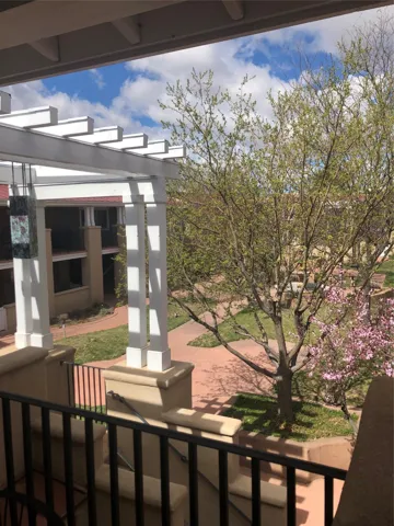Tantalizing opportunity to live walking distance to the Plaza. Behind the gates of El Matador, you will find this sweet two bedroom one bath off the courtyard with eagle’s eye view of the beautifully landscaped courtyard. You’ll have a patio to enjoy Santa Fe air and it leads into the open concept of living space graced with crown molding and plantation shutters. Built in shelving offers additional storage along with an elegant fireplace. The kitchen/dining area has been upgraded with all new LG Suite appliances, soft lighting, and efficient cabinetry. LVP and tile flooring throughout. Newer furnace with refrigerated air, as well as new washer/dryer combo allowing extra space. Remodeled bathroom is filled with light and ambiance. One bedroom with a full balcony and extra storage, the other bedroom with a Juliette balcony, have built-in drawer/hanging closets with auto light system. Somewhat unique to El Matador is two covered parking spaces. The easy access to Los Alamos, the National Forest, and The Plaza are crowning jewels.