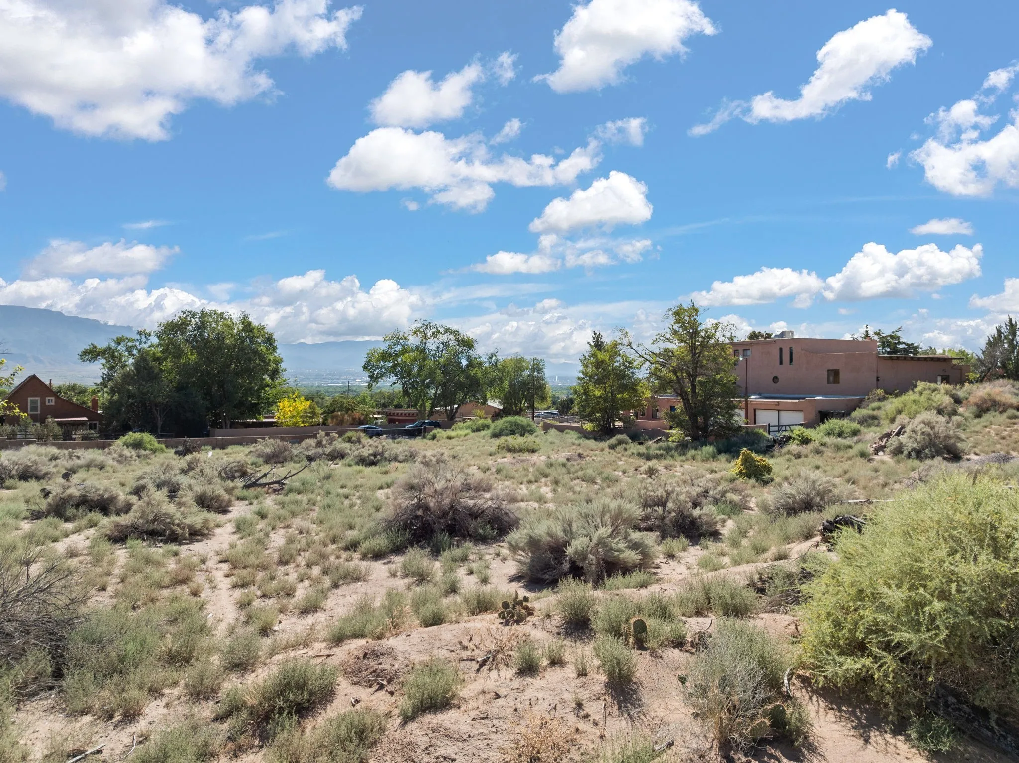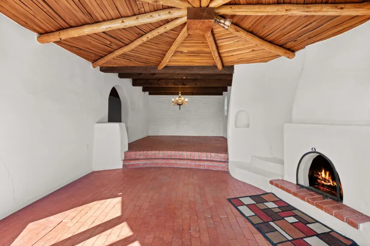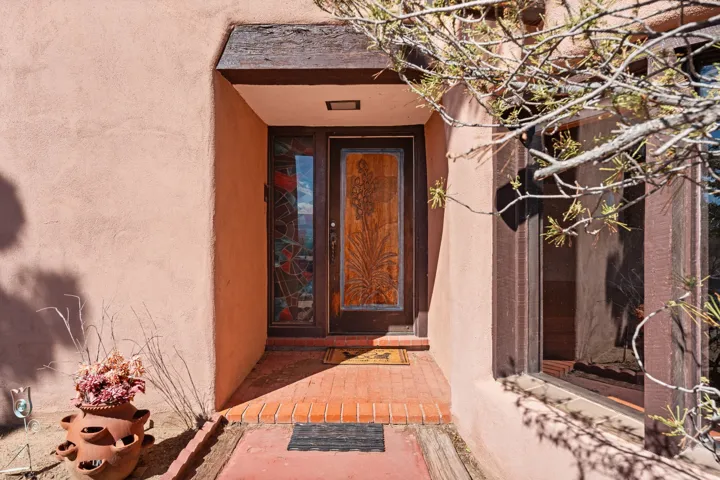What an opportunity to purchase an adobe on two lots, 1.38 acres with guest house & unlimited views. Indoor pool, stained glass, 3 levels, 4 car garage. Brick floors, latillas, beams, vigas, kiva fireplaces, & unlimited potential. 5 BR’s, 4, Baths, studio, in a sought out area that is convienant for shopping and commuting. Main home 3746. sf. includes the guest house of 561 sf. Indoor pool room of 1280 sf is not included in sf. A four car garage plus storage. A dumb waiter or utility lift functions from the garage to the third level for owners convienence. A must to see and call home!