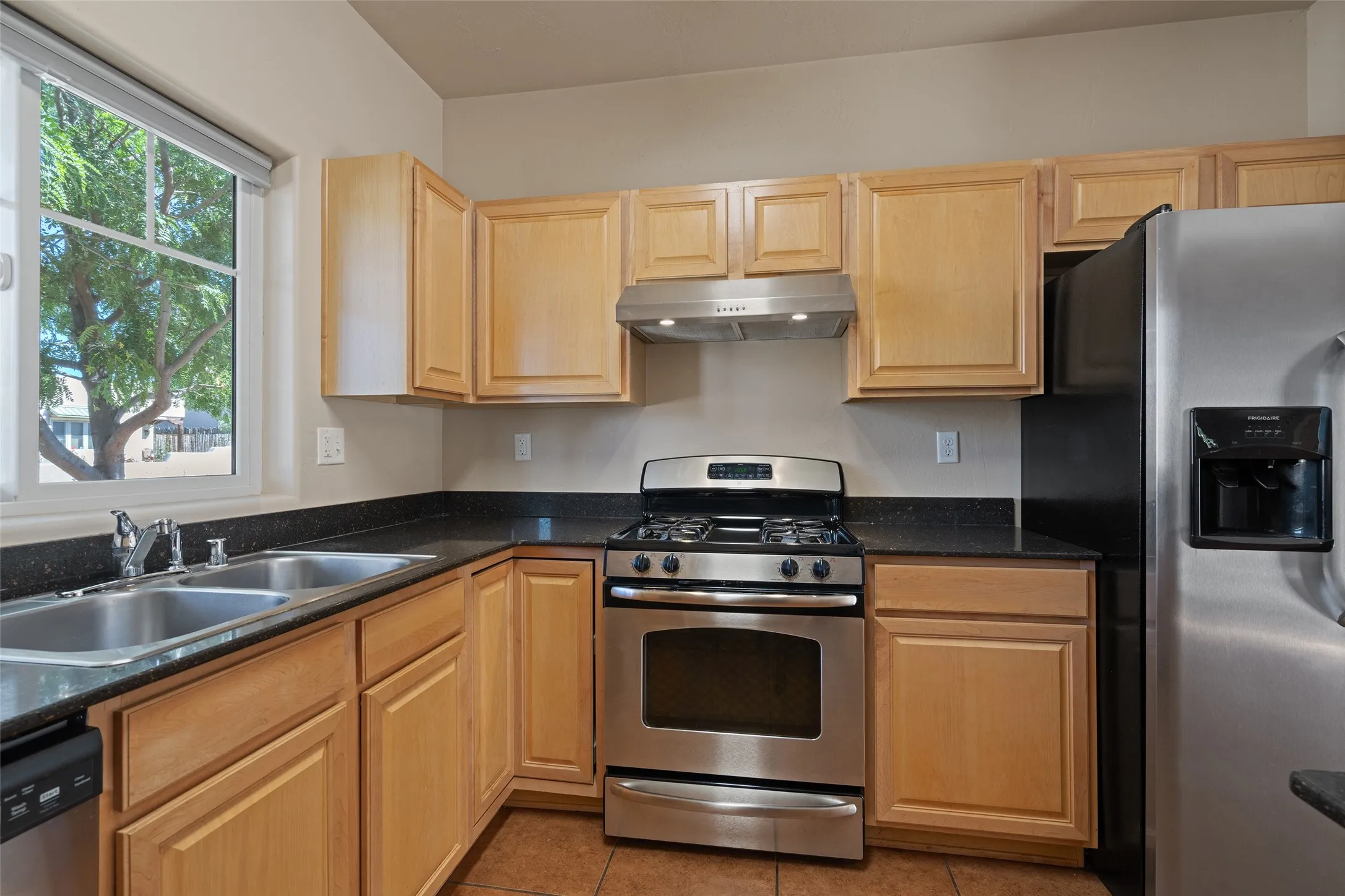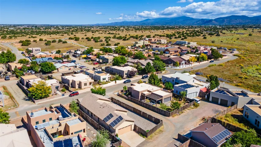 Why buy an ordinary home when you can buy this exceptionally built Craftsman style GREEN home! This LEED Gold certified home includes grid tied photovoltaic, tankless H2O, engineered construction, comfort guarantee, EPA indoor Air-Plus certified, Hepa filter ventilation, Energy Star appliances & Andersen windows, R-21 walls & R-50 roof, eco-friendly countertops, upgraded tile, cabinets, doors & trim and nine-foot ceilings. Owner still receives checks from PNM! Abundance of yard space, coyote fencing all around property. Long hallways for your art displays, a desk area off kitchen/dining and plenty of living/entertaining space. Enjoy the diverse architecture of Oshara Village and Pantry Dos a few blocks away. Community College, shopping and restaurants all around! Home is vacant, furnishings are digitally created.