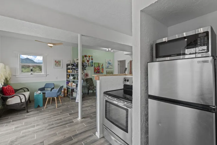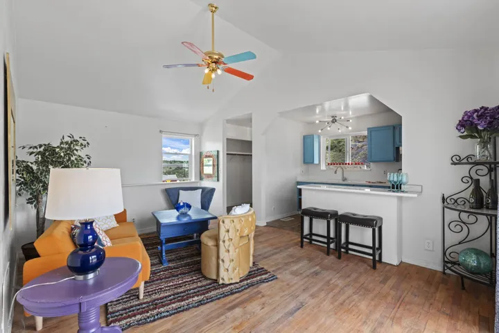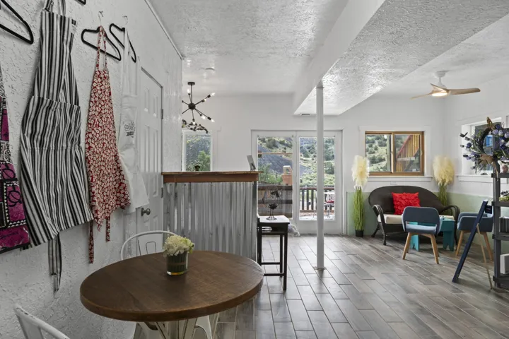 Authentic Magical Madrid Cottage with Creative Spaces! This sun-soaked gem blends possibility with artistic living. The upper level features a one-bedroom, one full bathroom, full kitchen owner’s suite with a private deck perfect for morning coffee or stargazing. Below, features a flex space like no other. Open floorplan with one bathroom and full kitchen. Great family home. With a separate entrance, the downstairs is perfect for a full-time rental or a short-term rental. Commercial space to display your unique art, local jewelry, homemade candles, local apparel, or anything your heart desires, while living upstairs and walking to enjoy all that Madrid has to offer! PLUS, lot next door is included. Perfect for additional parking or bldg. Amy Biehl Elem, Milagro Middle, SF High. YOU’RE HOME!