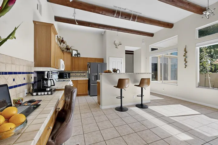 Additional features include mature trees, a spacious 2-car garage with direct interior access, and easy move-in readiness. Take in peekaboo views of the Ortiz Mountains from the kitchen window or watch the fireplace in the evening. This is a home that blends comfort, charm, and practicality in one incredible package.