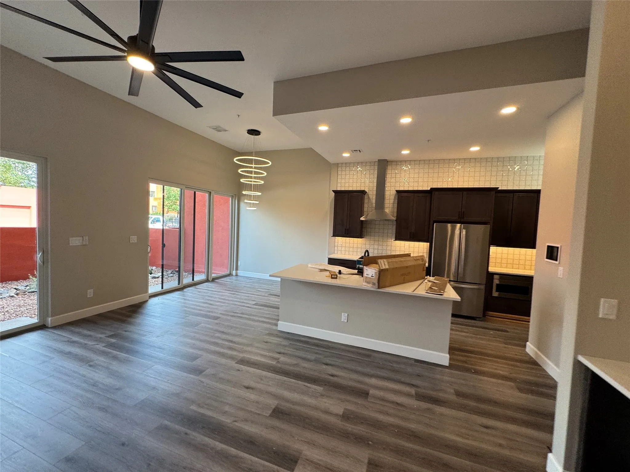Welcome to Unit #45 at Zocalo, Santa FeāA refined interior unit that perfectly melds luxury with comfort. As you step into the inviting foyer, you are presented with two enticing options: descend to the lower level where the expansive great room awaits, complete with modern grey toned, sophisticated brushed nickel finishes, and contemporary maple-finished flooring that radiates modern elegance. This level also houses the well-appointed kitchen and provides access to the beautifully landscaped patio, ideal for both vibrant entertainment and serene relaxation.