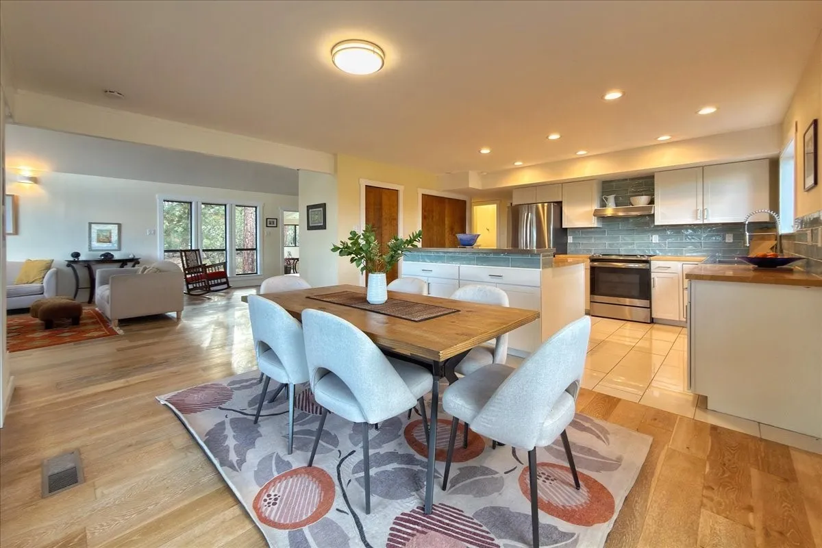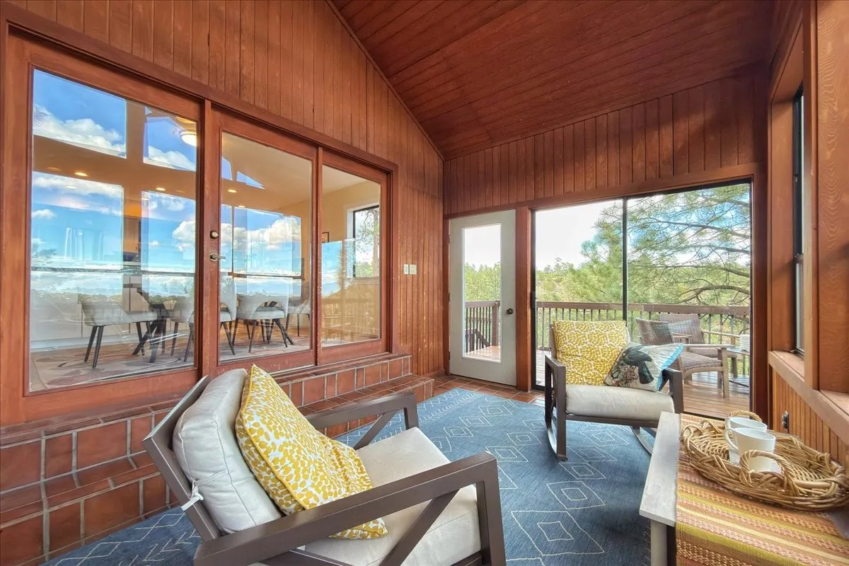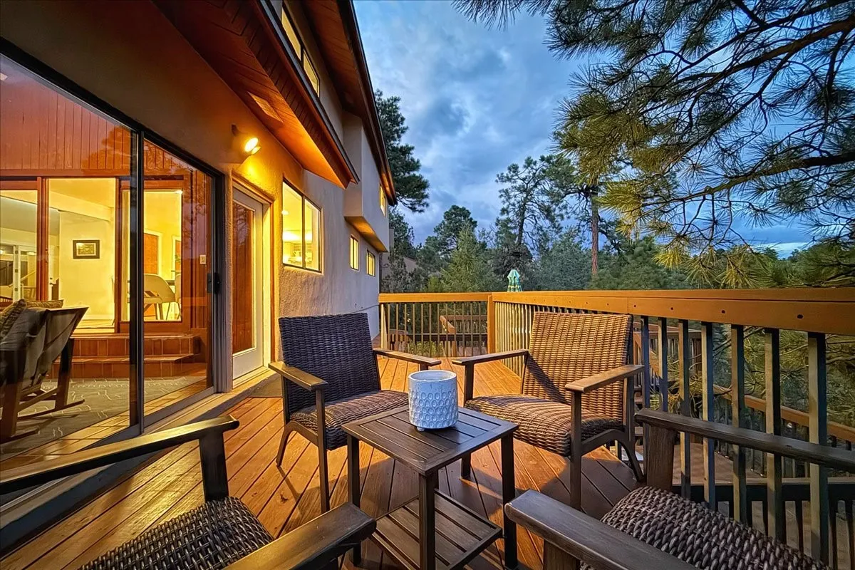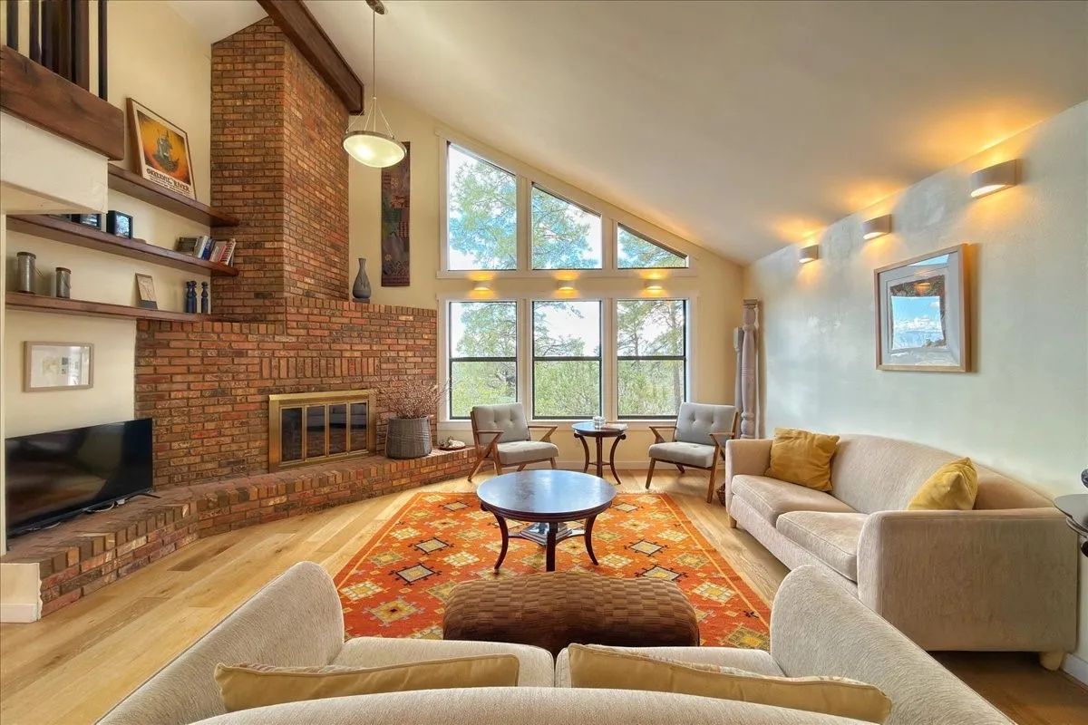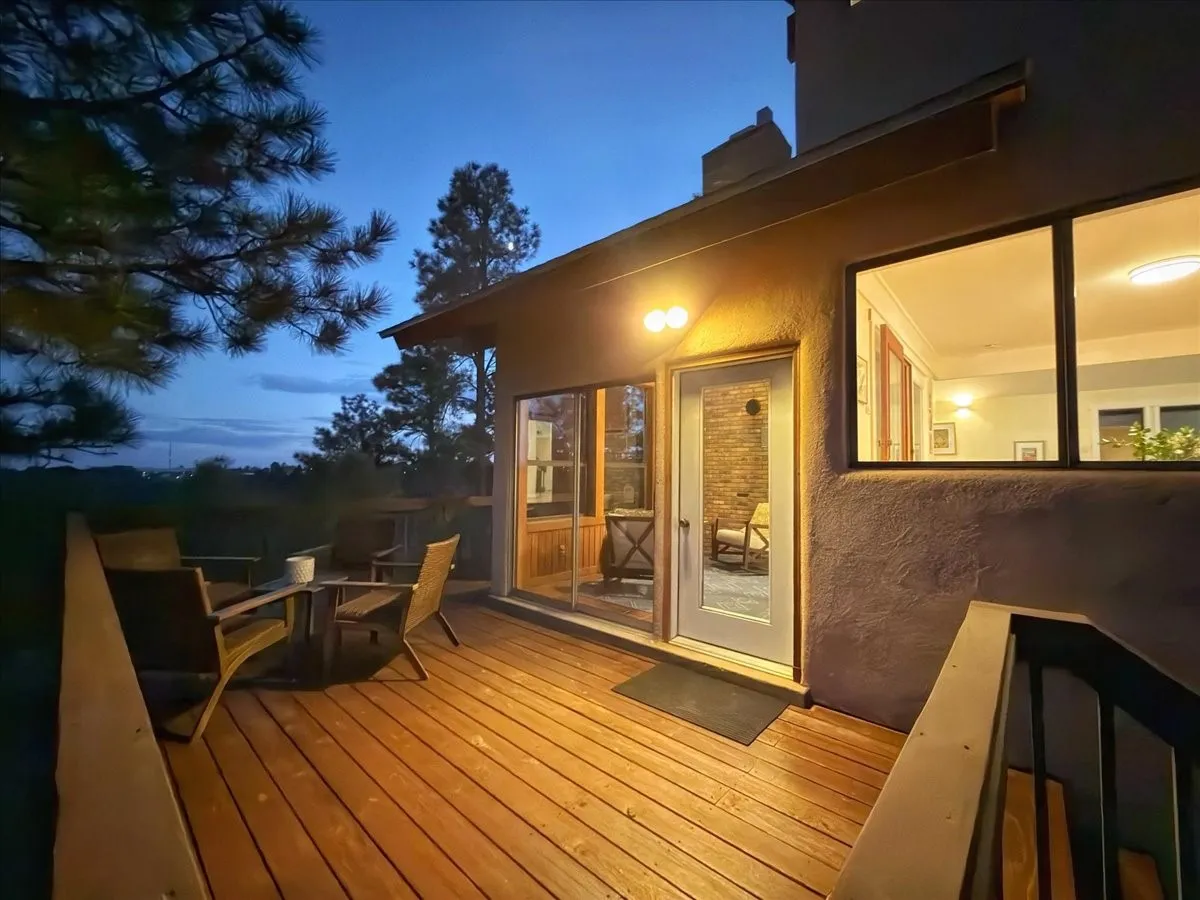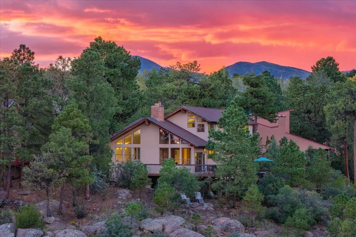 Situated at the end of a private cul-de-sac, this custom-built home combines mountain character with lasting quality. The property takes full advantage of its setting, with views of the canyon and surrounding peaks visible from nearly every room. The great room is the centerpiece of the home, featuring vaulted ceilings, a two-story fireplace, and large picture windows that frame the landscape. The floor plan flows easily into the dining area, kitchen, and sunroom, creating a comfortable space for daily living and entertaining. The main level includes two bedrooms and a full bath, while updates throughout the home add convenience without losing its original style. Upstairs, a loft with custom built-ins and generous storage offers flexibility as an office, library, or quiet retreat. The primary suite is set apart, offering exceptional views, a large closet, and an updated bath. Outdoor living is a highlight, with three decks plus a wraparound walkway providing multiple vantage points for entertaining, birdwatching, or simply enjoying the scenery. Low-maintenance landscaping leaves more opportunities to relax and enjoy the view. Additional features include central A/C, laundry and pantry space, and an oversized two-car garage with a dedicated storage closet. With its thoughtful design, prime location at the corner of two canyons, and exceptional views, this home offers both privacy and community in a sought-after setting.