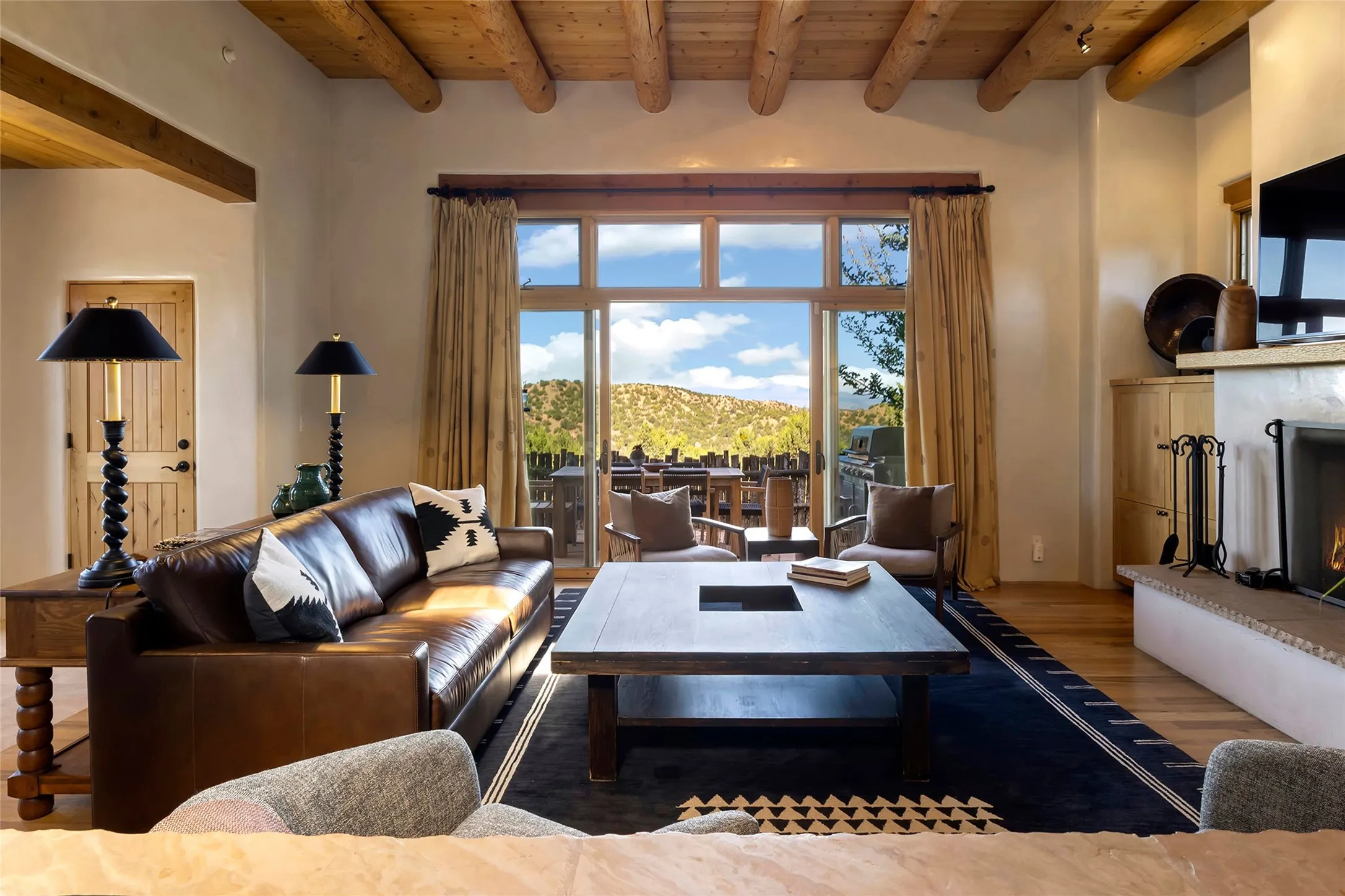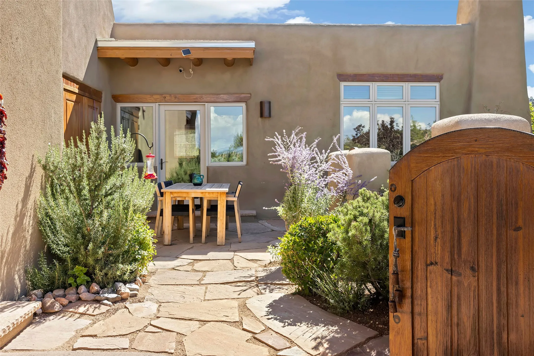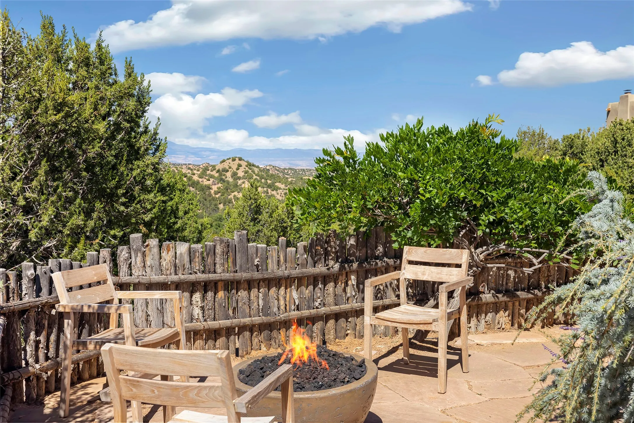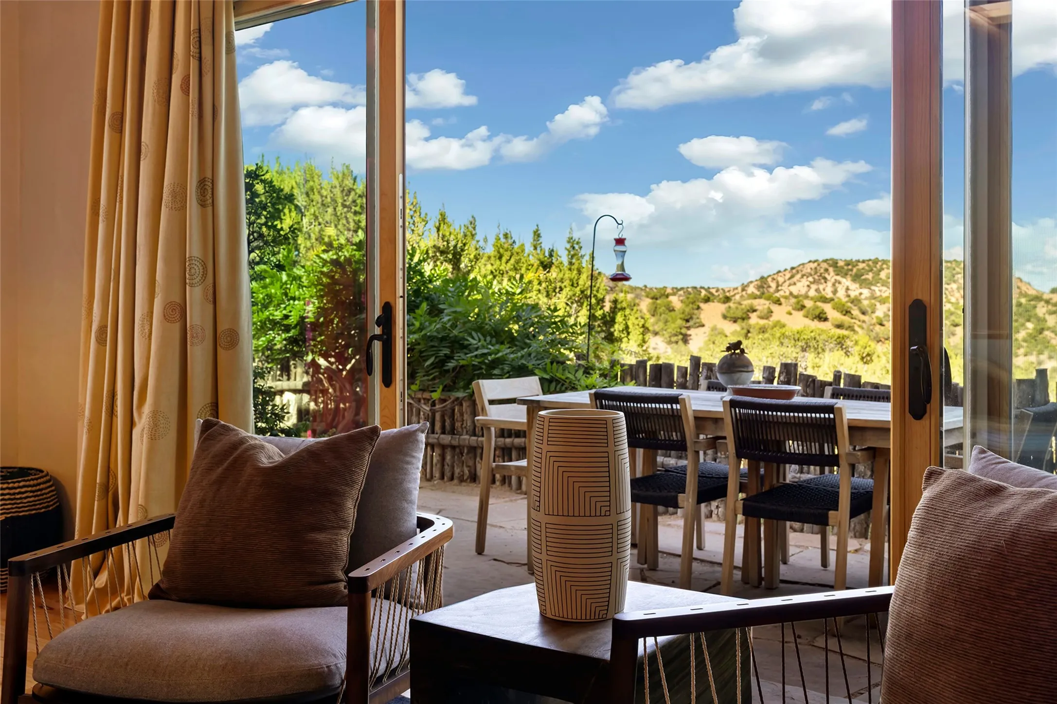 Rare single-level Bishopās Lodge Villa located above the Bishopās Lodge, Auberge Collection Resort. This free standing villa is uniquely located within the gated community perched on the edge of nature with sweeping Jemez Mountain Views and ultimate privacy from neighbors. Price includes a turn-key upgraded furniture package on this professional & locally managed investment opportunity with future bookings in place. A custom entry gate leads to the updated courtyards with coyote fencing, flagstone patios, lush landscaping, and a fire-pit ideal for entertaining & sunset views. Inside, a grand foyer opens to the living room that views the mountain vistas, a fireplace with flagstone hearth, gas logs and glass sliders all opening to an outdoor grilling/dining terrace. The generous kitchen offers updated quartzite countertops, KitchenAid SS appliances with gas range, bar seating and ample storage, opening to an expansive dining area filled with natural light.