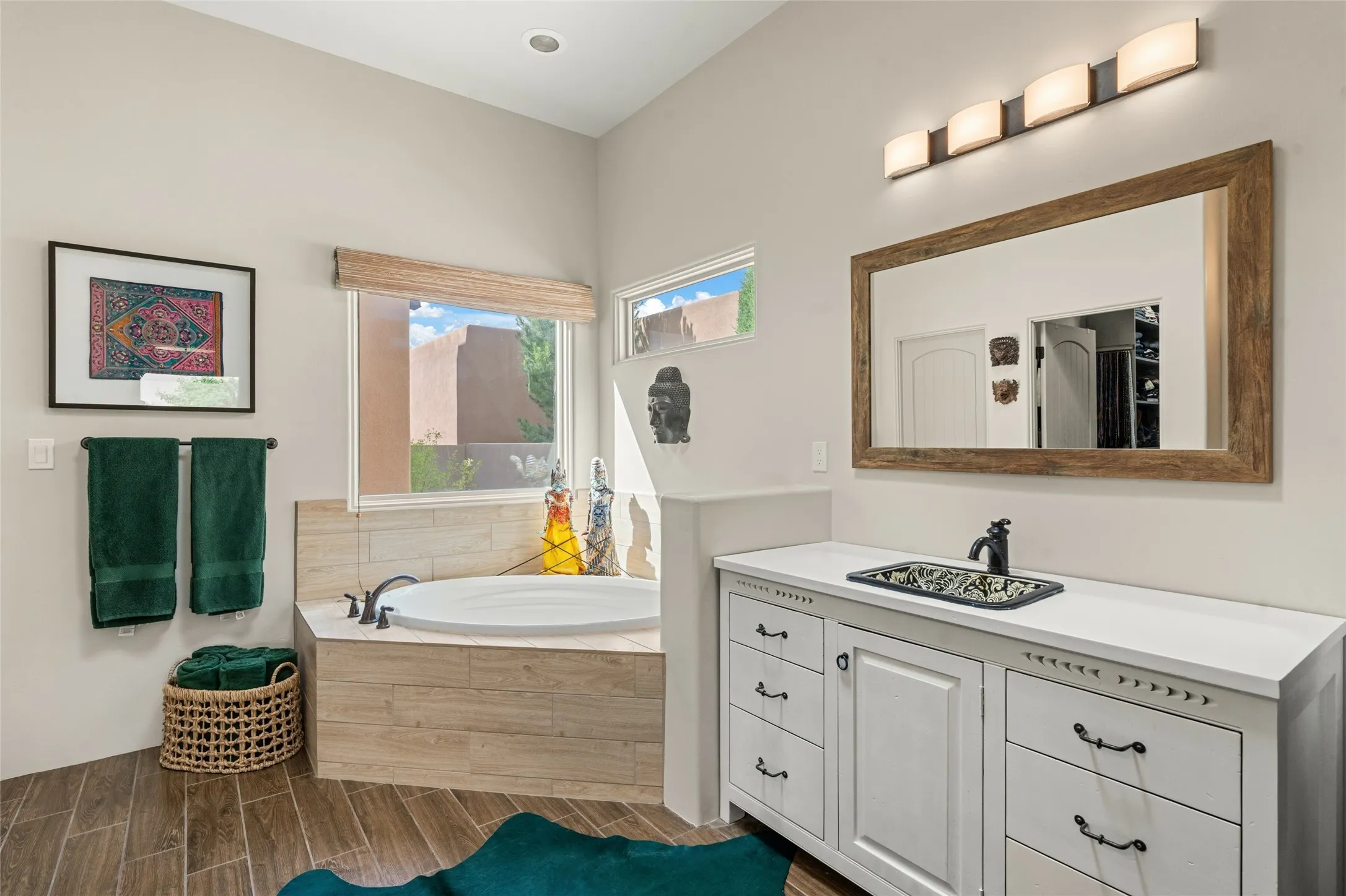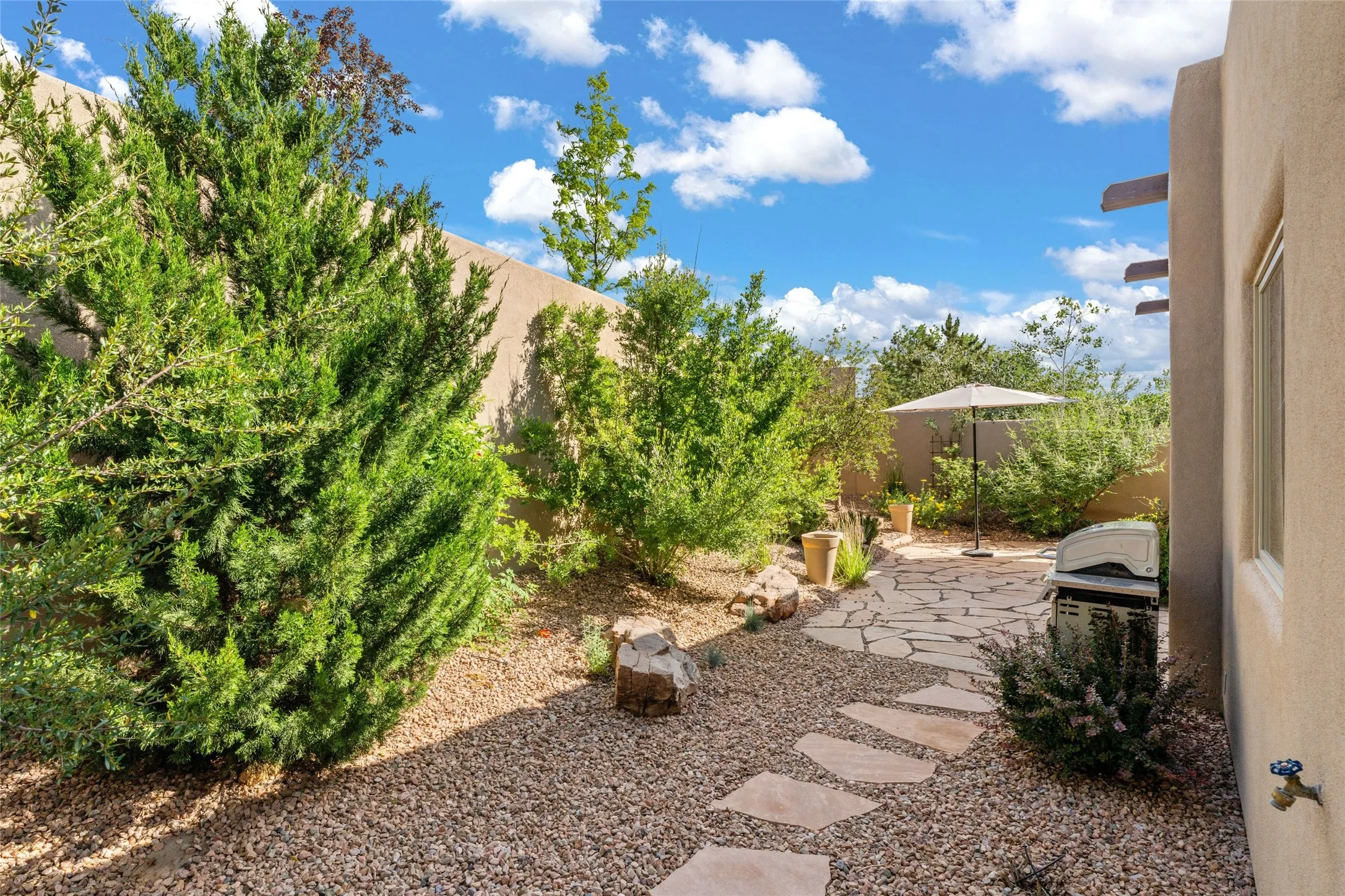 With a flawless new sewer line inspection report available, this home is move-in ready! Showcasing a functional design in one of the most desirable locations in Santa Fe, this stunning home is a rare opportunity to own a home UNDER 1 million dollars in Las Campanas. The home maintains a warm, welcoming feel, filled with natural light and surrounded by native landscaping, and walled backyard for privacy and pet safety. Just minutes from downtown Santa Fe, a quick trip to the airport and easy highway access, this property offers the best of Southwestern living – spacious, secluded, and perfectly situated. This home has been beautifully updated with new kitchen cabinets, a luxurious primary walk-in closet, a full wall of husky cabinets and 2 additional benches in the garage, a new tankless water heater, a reverse osmosis water treatment system and many more upgrades. A private enclosed patio is showcased in this elegant design that seamlessly combines contemporary living with the rugged Santa Fe views and sunsets that our state has to offer. Beautiful, established landscaping with drip irrigation, flagstone patio and walk ways makes for an enjoyable and low maintenance outdoor space. The open kitchen and living area, framed by a peaceful garden (perfect for pets), offer an inviting space for gathering with friends and family. Complete with a detached studio, this property offers unmatched versatility in a beautiful gated community with 24 hours security/EMS, and designated path walks few steps from your front door. Owners have the option to gain access to The Club at Las Campanas, which provides exclusive access to two Jack Nicklaus Signature Golf Courses, pools, a state-of-the-art fitness facility, and fine dining. Broker can provide a list of all the incredible upgrades and updates that come with this move-in ready home!