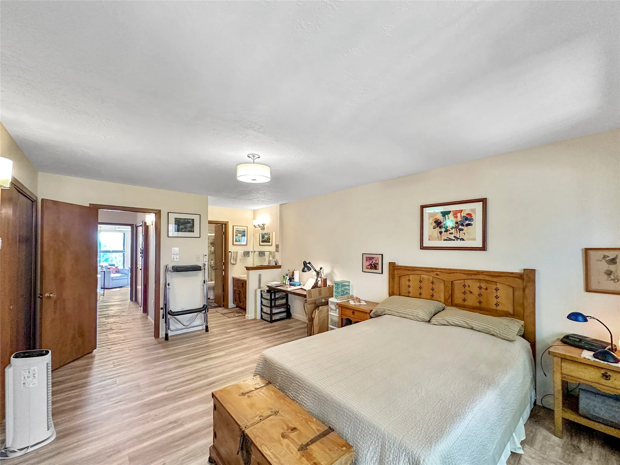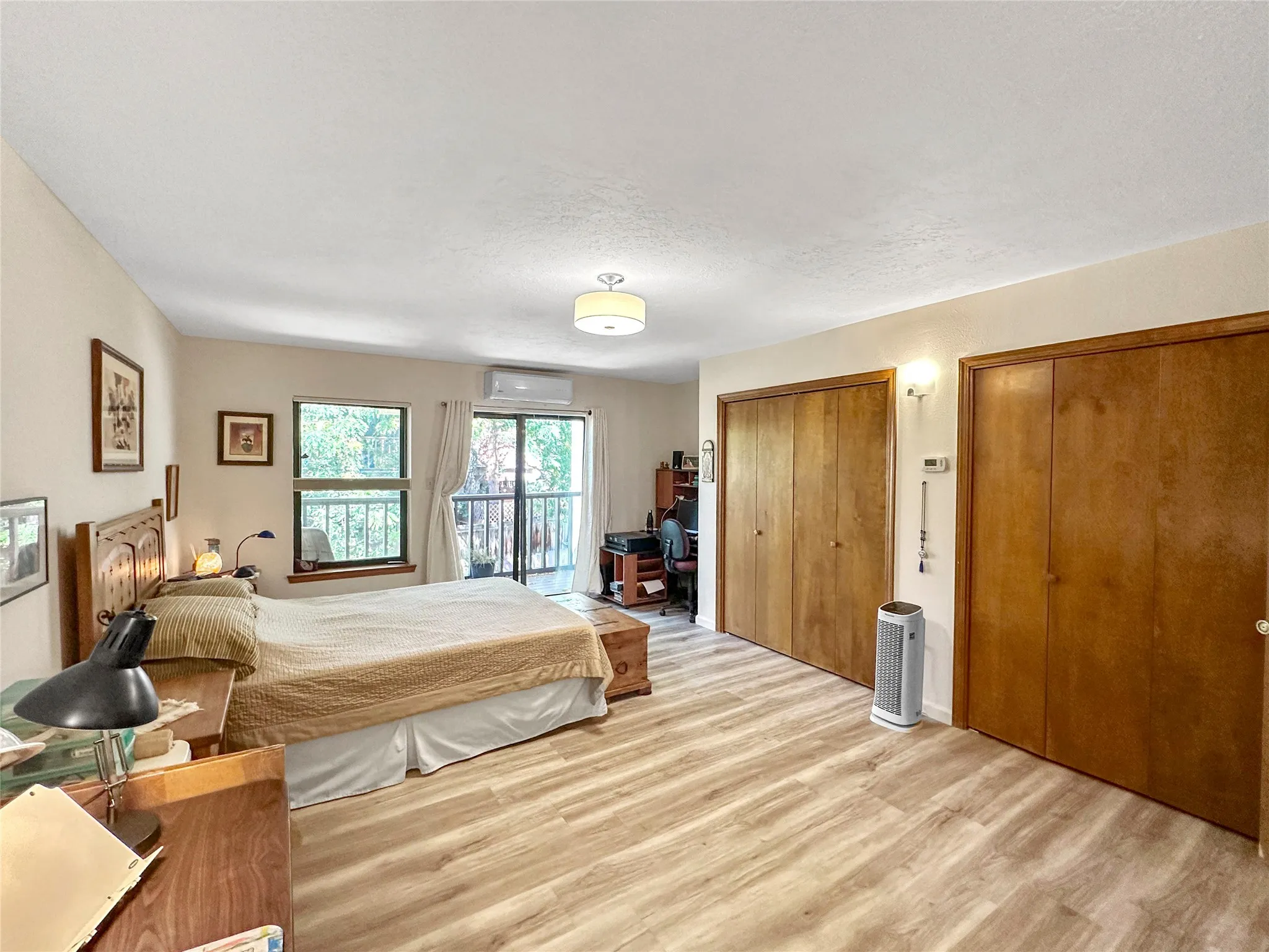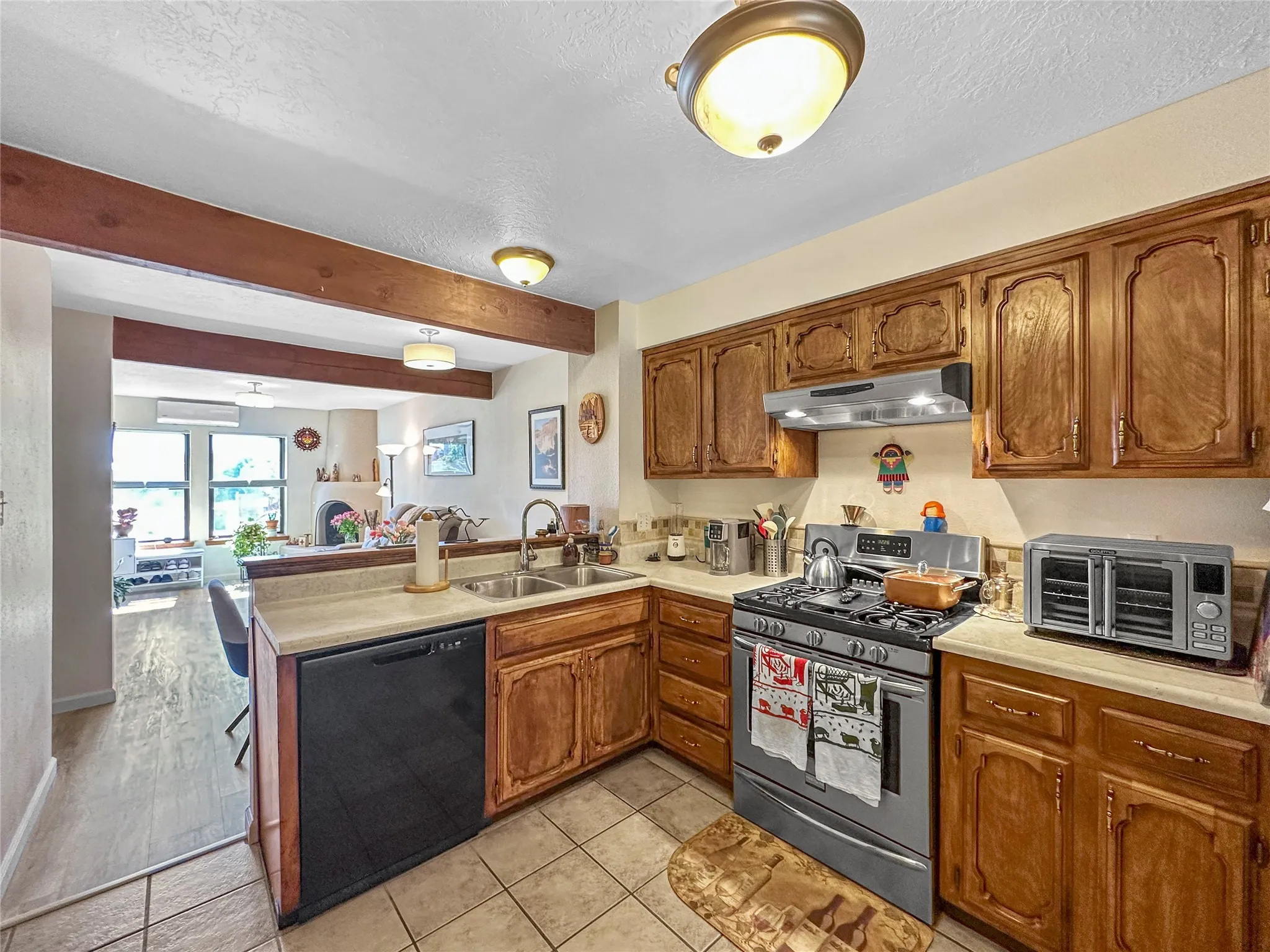This centrally located and maintained townhome in Avenida De Las Americas is move in ready for the new owner. The well thought out floorplan allows for comfortable space between the living room and dining room while still being within reach of the kiva fireplace heat. Plenty of windows allow light in the home to accentuate the vigas. LVP flooring, countertops, stained cabinets, mini-splits, bathroom shower, and a TPO roof maintenanced in the last 3 years are just a few of the highlights that make this home stand out in this neighborhood. Step out into the large primary bedroom’s balcony to enjoy the cozy view of the back yard that is watered with drip irrigation for peace of mind.