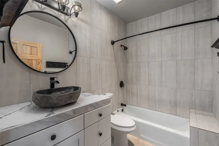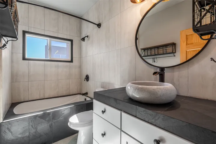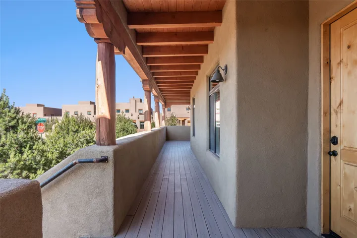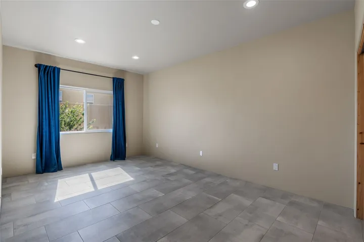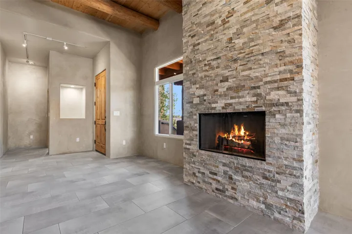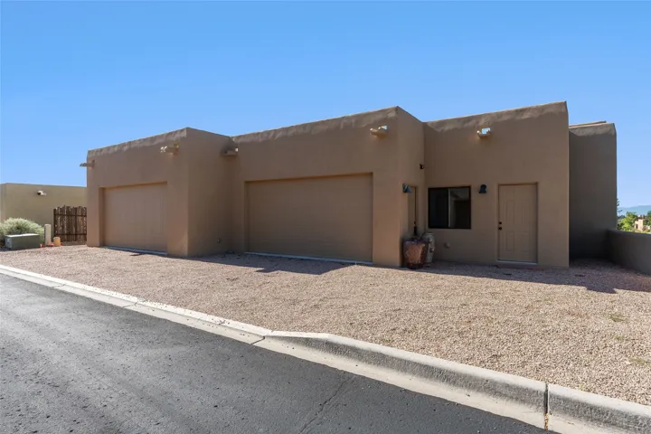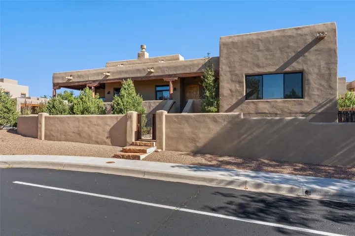Sophistication meets Santa Fe charm at 32 Calle Lemita, an elegant residence in the coveted Aldea de Santa Fe community. This 3-bed, 3-bath home offers refined living on a 0.16-acre lot with stunning natural light and partial sunset views. The open, airy floor plan highlights soaring ceilings, rich finishes, and seamless flow between living, dining, and kitchenāperfect for stylish entertaining. The expansive living room offers a stacked stone fireplace, high ceilings and traditional Vigas. Plaster walls throughout the main living area. The chefās kitchen boasts premium cabinetry with soft close drawers, generous counter space with quartz countertops, designer tile backsplash and high-end stainless steel appliances. Massive pantry/storage room off the kitchen. The luxurious primary suite offers a spa-inspired bath, one of the most custom walk-in closets you will ever view, plus separate shower and jacuzzi tub. Two additional oversized bedrooms provide versatility for guests or a home office. Laundry room with sink and built-in cabinetry. Whole house radiant cooling/heating system. Adjacent to the heated/cooled 4 car garage is a flex room, perfect for a home gym or studio space. Outdoor living shines with a private enclosed courtyard and elevated patio designed to capture Santa Feās dramatic sunsets. Lots of wonderful upgrades, such as LED recessed lights, floor to ceiling tile in multiple bathrooms, carved stone sinks and much more. Located approximately 20 minutes from the historic Santa Fe plaza, Aldea de Santa Fe offers exclusive amenities including walking trails, pickleball/tennis/basketball, community gathering spaces, and easy access to fine dining, galleries, and world-class cultural events. This property is ideal as a sophisticated full-time residence or lock-and-leave retreat for discerning buyers seeking style, privacy, and connection to Santa Feās vibrant lifestyle.