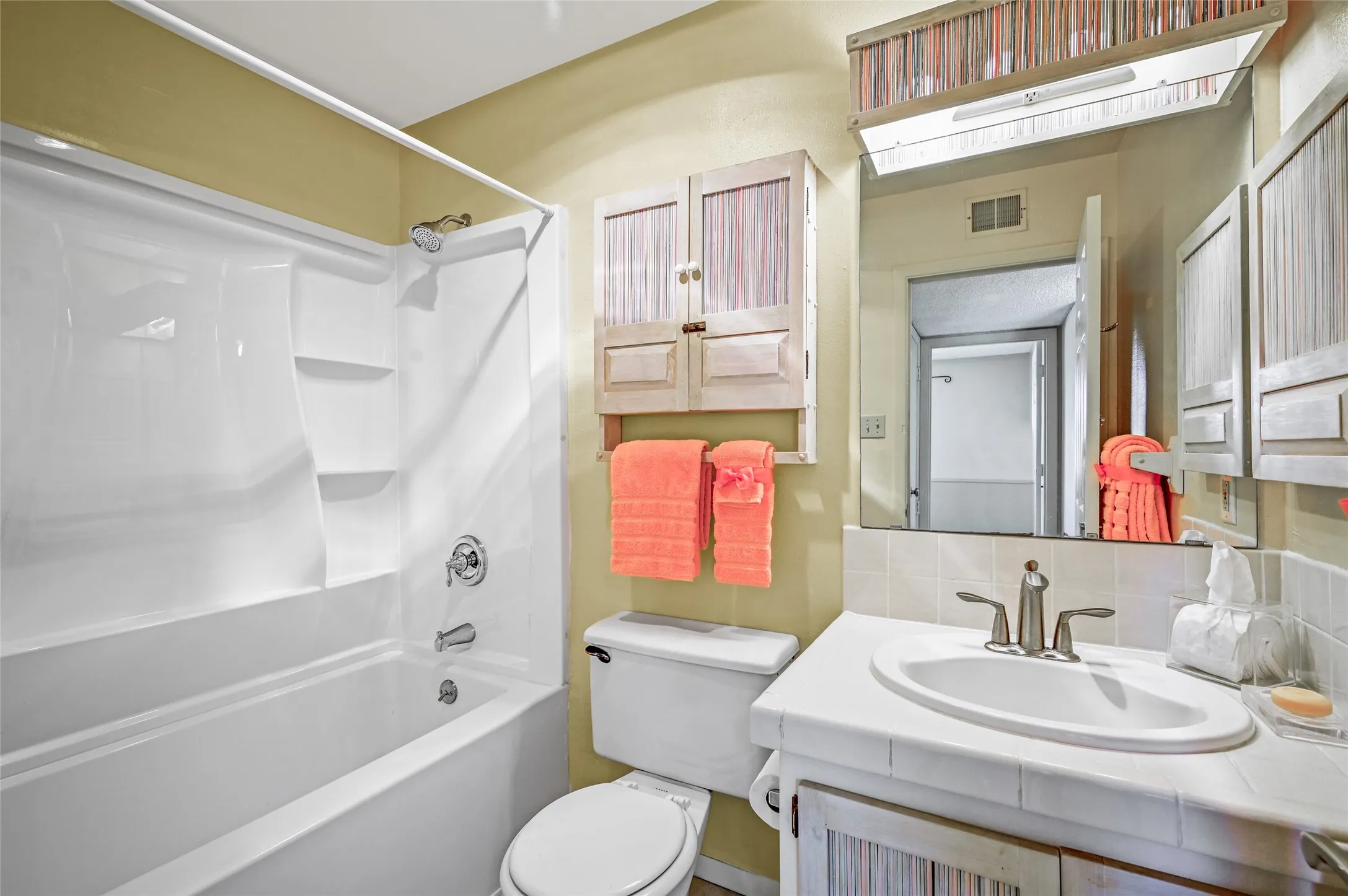 Privately located at the end of a cul de sac, this lovely home boasts tile flooring throughout. Kitchen cabinets, hallway linen closet and second bathroom cabinets are handcrafted and boast a simple and lovely southwest design. The kitchen features a handcrafted backsplash and multi-colored tile flooring that compliments the color palate of the kitchen. Quartz countertops and stainless steel appliance package. Both bathrooms feature new shower and tub surrounds and some new plumbing. The home has central air conditioning to keep things nice and cool in the warmer months. The back yard and patios enjoy views of the mountains to the west/north west. Completely re-stuccoed this past month and exterior woodwork refreshed. Spotless two car garage. Landscaping includes pergola entryway, organic apple and apricot trees and patios in