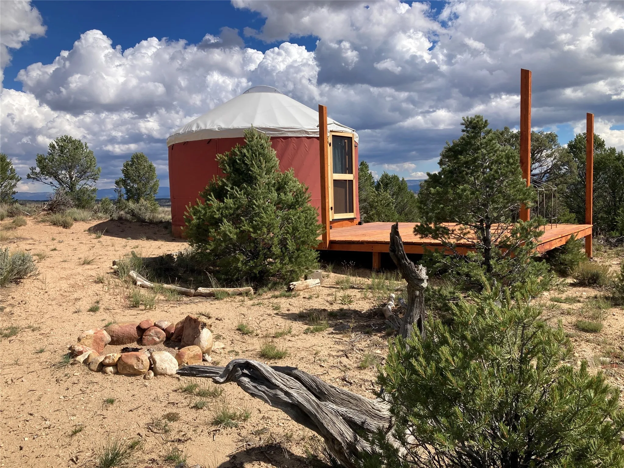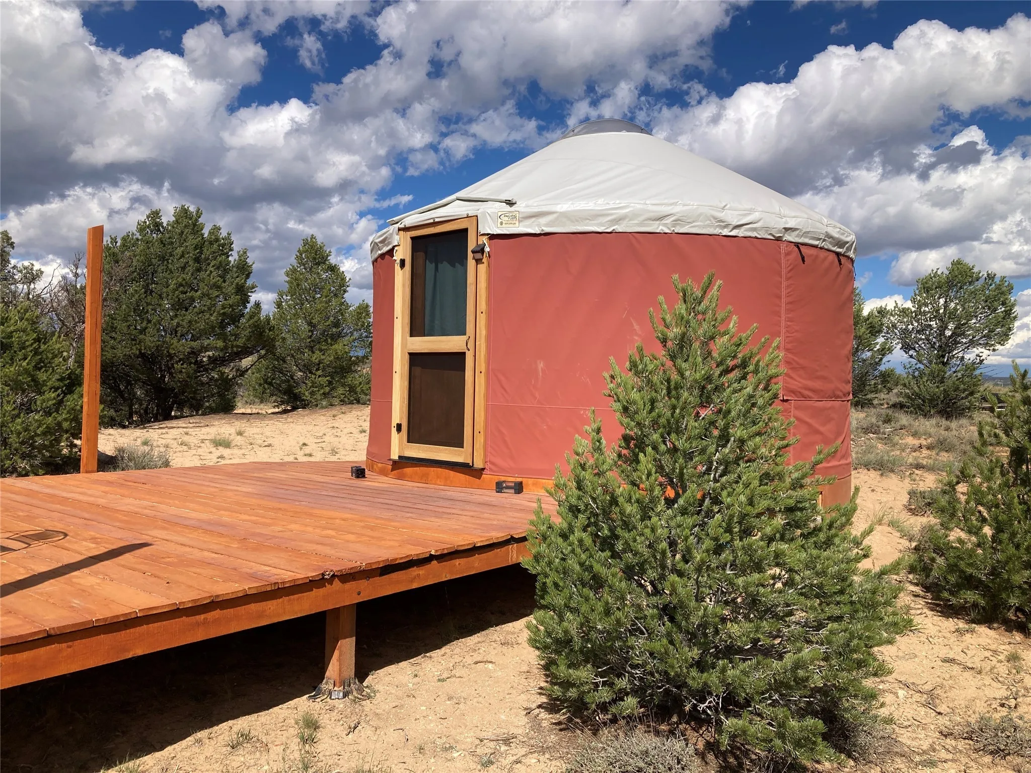 The land includes a one-year-old, 16-foot yurt with a large deckāan ideal space for relaxation, stargazing, or as a comfortable base camp while you enjoy the outdoors. A gravel driveway provides easy access from one of two cul-de-sacs that border the property, leading directly to the yurt site. At the east access point, a split rail Wyoming-style fence adds rustic charm, while the remaining boundaries feature barbed wire fencing for definition and utility.