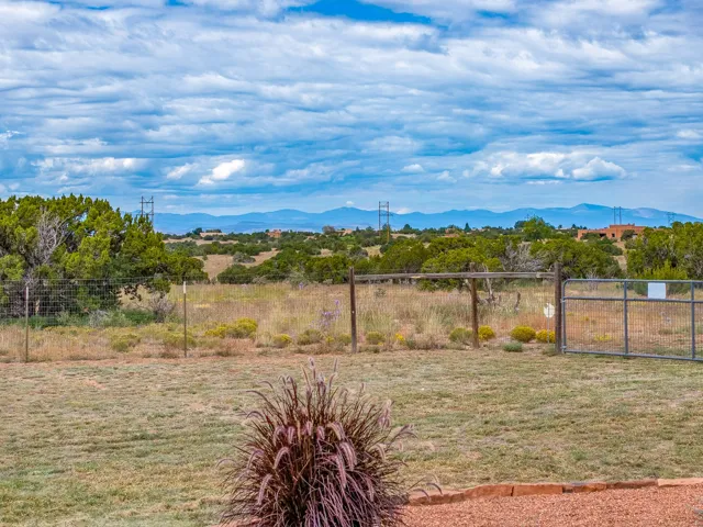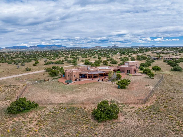 Wishing for a house/guesthouse/and a 5-car garage with an additional RV garage on 5 acres? Your wish has been granted! Just 20 minutes from downtown Santa Fe, this beautifully sited single-level property offers sweeping mountain views, abundant garage space, and classic regional charm. The 5-acre parcel (with ½ acre fenced) includes a 2,548 sq. ft. 3BD/2.5BA main residence and a connected 698 sq. ft. 1BD/1BA guest houseāideal for guests and flexible use.The property features an attached/heated 3-car garage, an attached 2-car garage (connected to the guest house), and a heated/cooled RV garage, perfect for a hobbyist, car enthusiast or artist! The main residence captures expansive views of the Sangre de Cristo, Jemez, and Ortiz mountain ranges from a deep East-facing portal and a new 900 sq. ft. West-facing portal. The living room features a custom plastered and hand-painted kiva fireplace and beautifully hand-carved corbels. The kitchen is outfitted with granite countertops, a 6-burner Wolf range with a potfiller, two ovens (one convection microwave), warming drawer, a KitchenAid refrigerator, and an extra dual temp beverage refrigerator. The kitchen island has a second sink and seating for three. The breakfast bar with seating for 2 or 3 persons, creates an open flow to the dining area. The private primary suite enjoys a sitting area, east portal access, two walk-in closets, a soaking tub beside a gas fireplace, and a walk-in shower. The 2 guest bedrooms share a ¾ bathroom and have excellent separation from the main living areas. A breezeway connects the guest house, which enjoys its own patio and a beautifully maintained vegetable gardenāperfect for those wanting to grow fresh greens. Additional features include in-floor radiant heating, natural gas, 8 mini-splits, Eldorado community water. Horses are also allowed. A rare opportunity for peaceful country living with city conveniencesāthis home blends beauty, functionality, and flexibility in one stunning package.