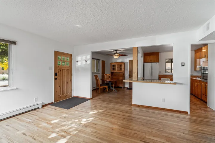 Outdoors, the beauty continues on a spacious irrigated lot framed by mature fruit trees and manicured gardens. Relax on the flagstone front patio, unwind in the outdoor sauna under the stars, or simply enjoy the peace and privacy of your lush backyard oasis. Thoughtfully maintained with a maintained roof and reliable systems, this gem is move-in ready yet offers ample opportunity to add your personal touches. Located just minutes from the Santa Fe Plaza, Canyon Road, neighborhood parks, and walking trails, this home captures the best of authentic Santa Fe living ā charm, character, and possibility in one delightful package.ā