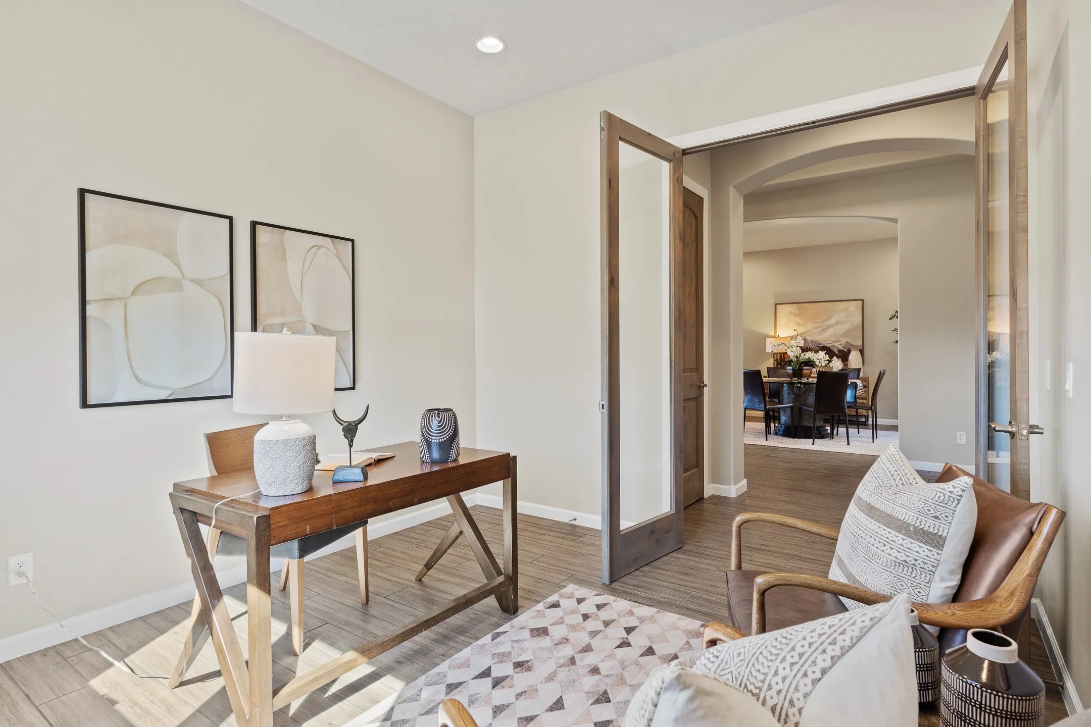 The primary suite is a private sanctuary with breathtaking mountain views and a spa-like bath featuring dual vanities, a dedicated makeup area, and luxurious finishes. A separate guest suite with its own living area offers comfort and independence for visitors, while a dedicated office adds flexibility for work or creative pursuits.