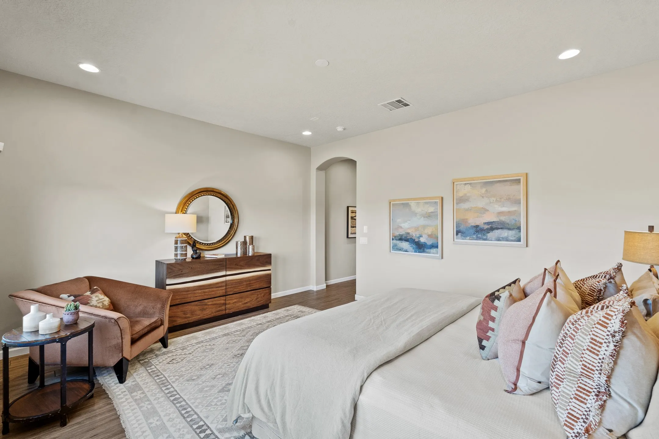 Where contemporary design meets timeless Santa Fe elegance, this 3,715-square-foot single-level residence offers the perfect balance of sophistication, privacy, and sweeping mountain views. Completed in 2023, this home features upgraded modern finishes and is nicely sited on a corner lot ā backing to open space to the west.