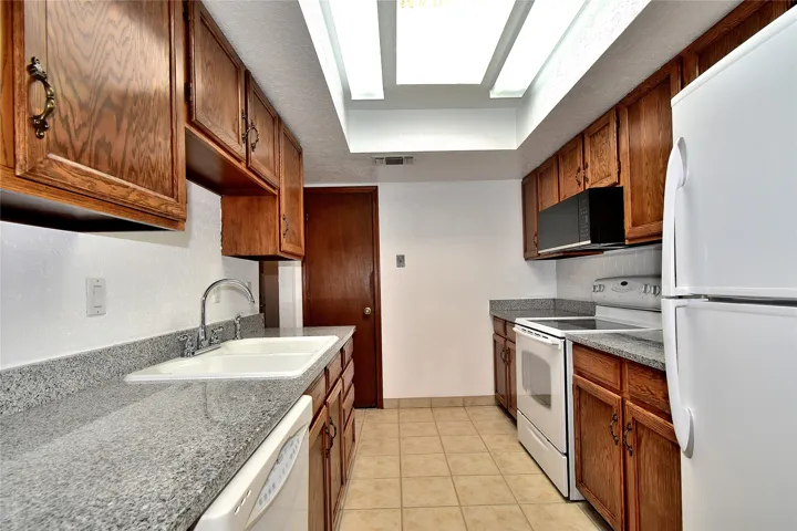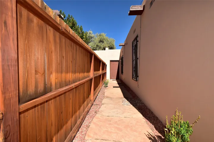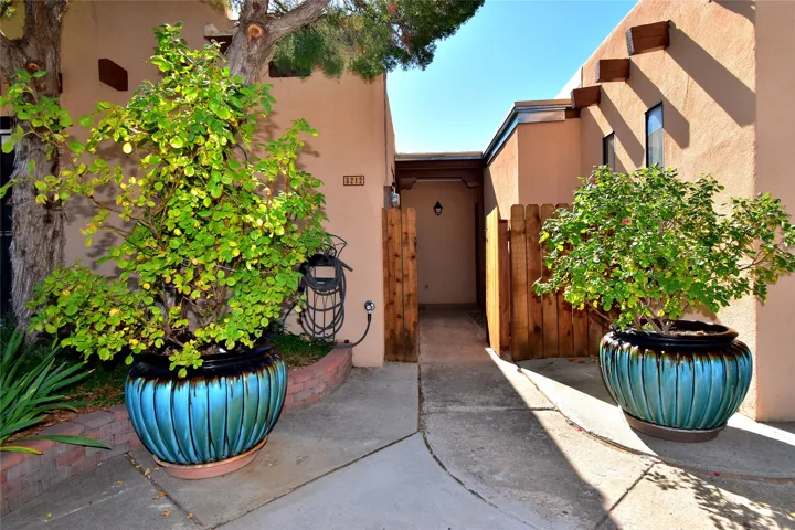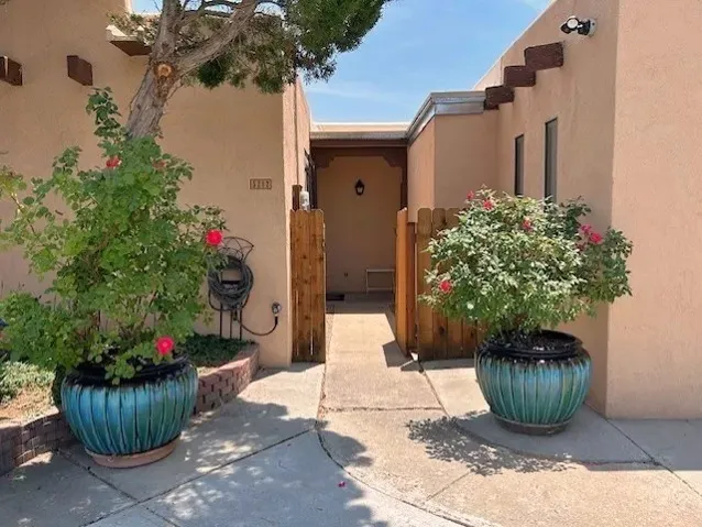 PRICE REDUCED BY OVER 25K. Beautiful, updated, light and bright and freshly painted home in Pueblo de Rodeo Rd. This single level home offers 3 bedrooms, 2 bathrooms and a 1-car garage with a spacious double driveway providing ample parking. An enclosed front entry courtyard welcomes you into the home. The galley kitchen features granite countertops, tile backsplash, pantry and new microwave in 2025. The backyard is private and offers a covered porch with flagstone and a large shed. Lovely features and amenities include: Newer windows-Remote Hunter Douglas top/down blinds-TPO roof-Tile and carpet floors-New washer and dryer in 2025 including water filter/softener system-Ceiling fans-Walk-in closet in primary suite-Carpet in the bedrooms. Super sweet home not to be missed.