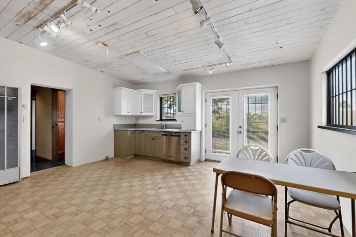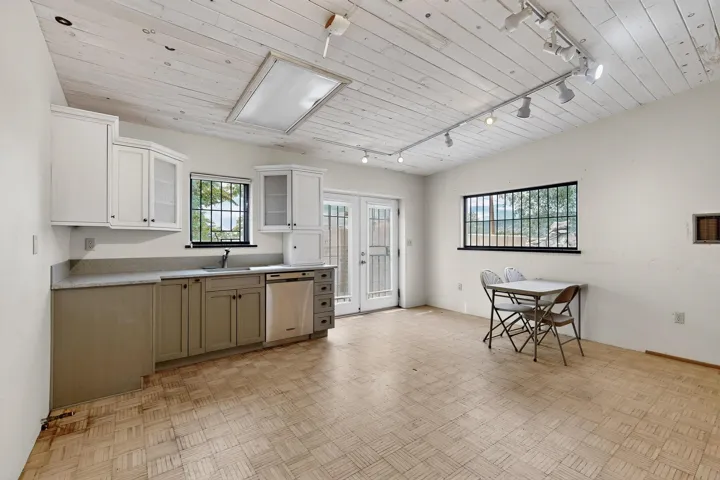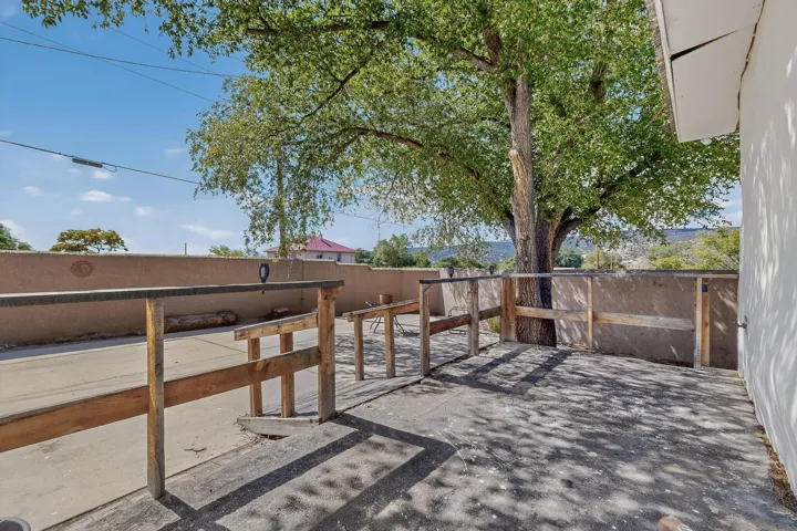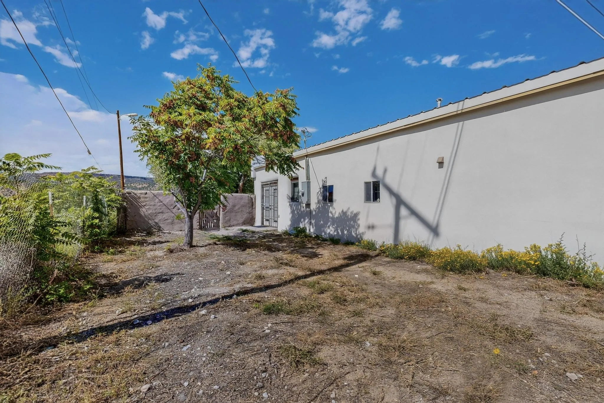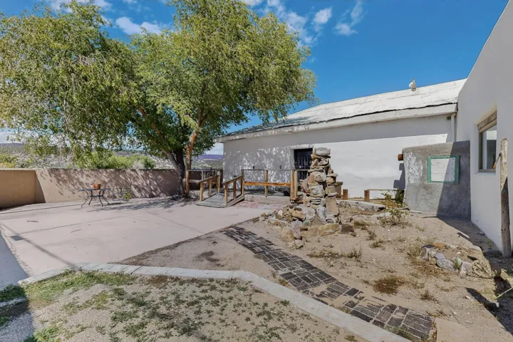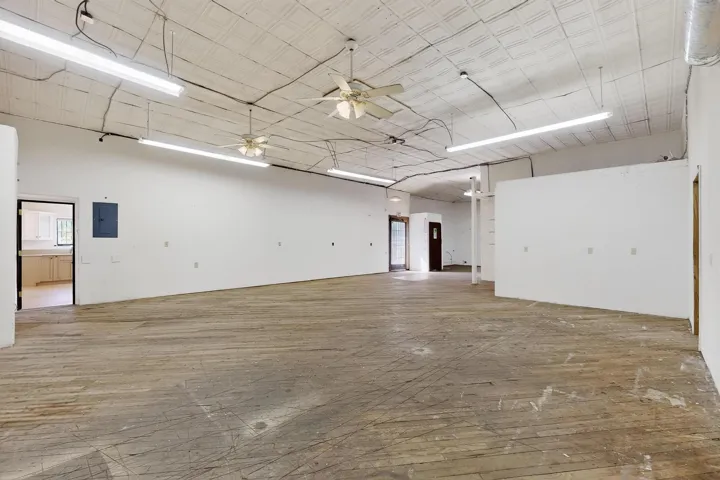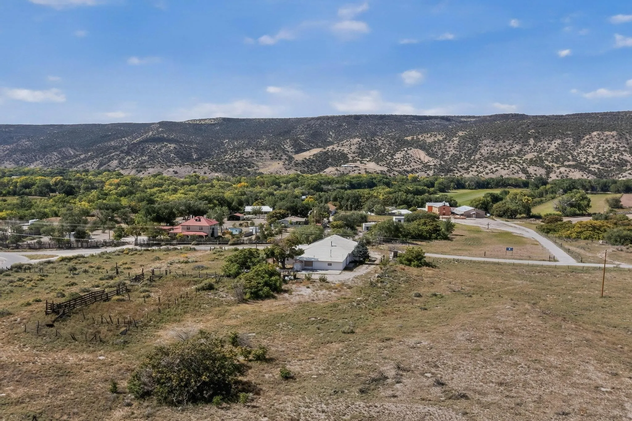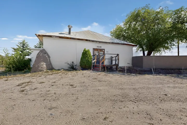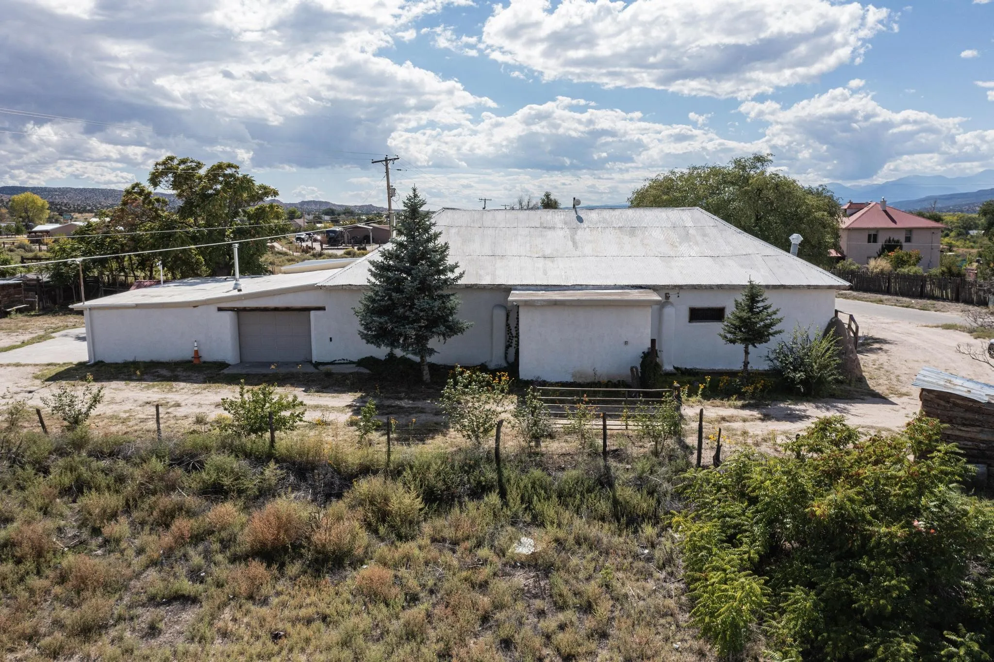 This historic 2′ thick adobe building offers a unique opportunity for restoration and redevelopment. Here is one of the truly unique adobe buildings that has seen its near full share of possibilities, dance hall, local pub, winery, cabinet woodworking shop and skating rink. The tin roof and tin ceiling were delivered on the old chili line railroad. The pine wood floors were originally built as a dance floor! In the 1950’s it was converted to a roller skating rink with a new oak floor that was added. Then it remained a local dance hall until the late 80’s, and in 2019 it was converted into a winery. This home could be used as a live work space and has an outdoor patio space and basement. Located just east of the Rio Grande and east of the Black Mesa with its many petroglyphs, bountiful orchards, and thriving Apple Production. It’s amazing to think about all the stories these walls could tell, and I’m sure the new owners will be ready to make their own history here.