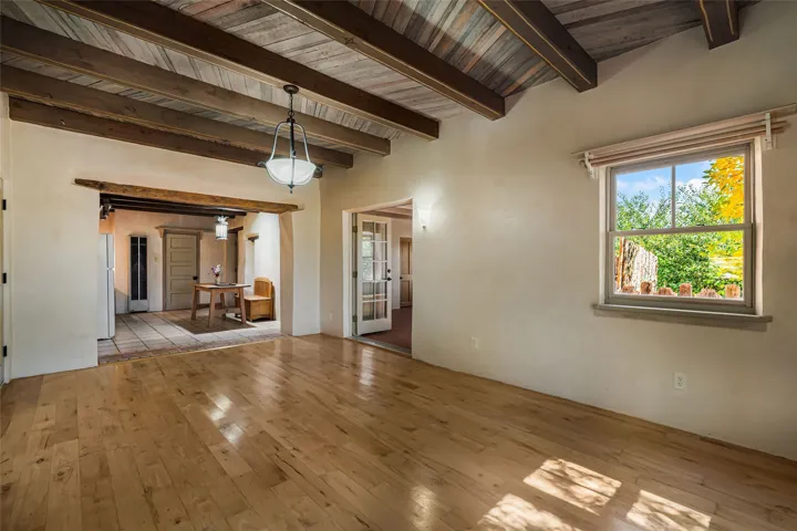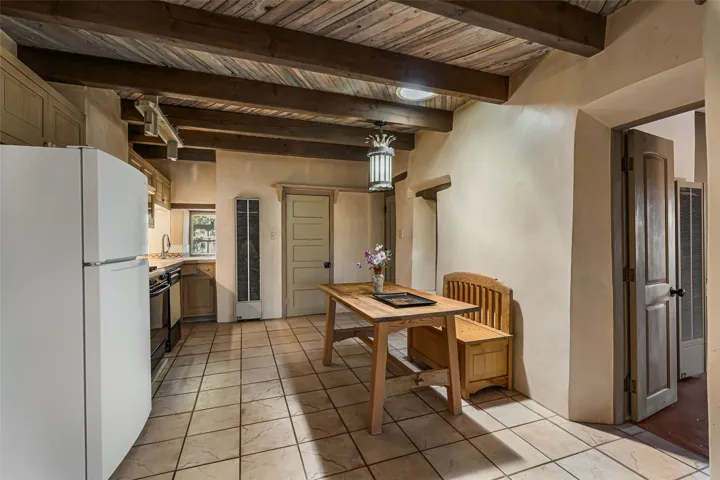 1-bedroom, 1-bath hand-crafted adobe condo designed by Jerry West. Set on 5.963 acres, this four dwelling condo community features lush communal grounds, including a flourishing orchard and a newer well with well house. Living/work room plus kitchen/dining area with a handcrafted table and bench, accompanied by an antique tin and glass chandelier refurbished by Maurice Dixon. Bedroom includes a blanket chest, adobe fireplace for those cool desert nights, hand crafted trastero cupboard for tv Ā plus 2 closets for your belongings. Two attached storage rooms and outdoor private parking for two vehicles. There are two yards and plenty of trees. Located off NM State Hwy14 at Lone Butte General Store with easy access to downtown Santa Fe.
