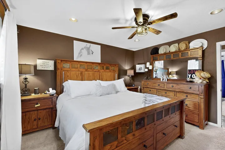 Outdoors, the property shines: the front yard is xeriscaped for low-maintenance beauty, while the backyard is a true oasis with a covered patio, pond, lush landscaping, and a large outdoor shed for all your tools and gear. Thereās even dedicated RV parking along the side of the house, adding functionality and value.
