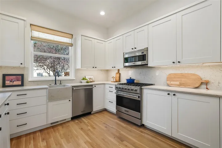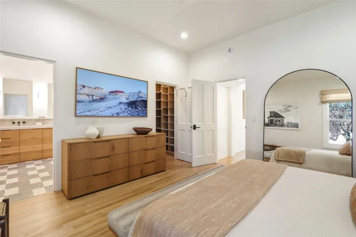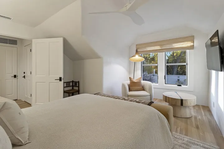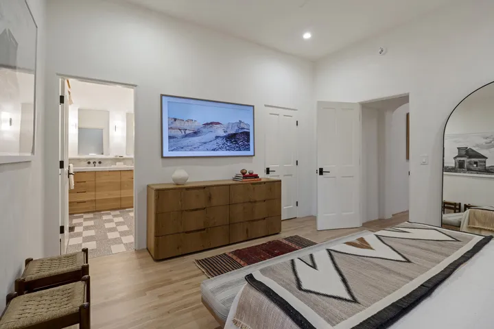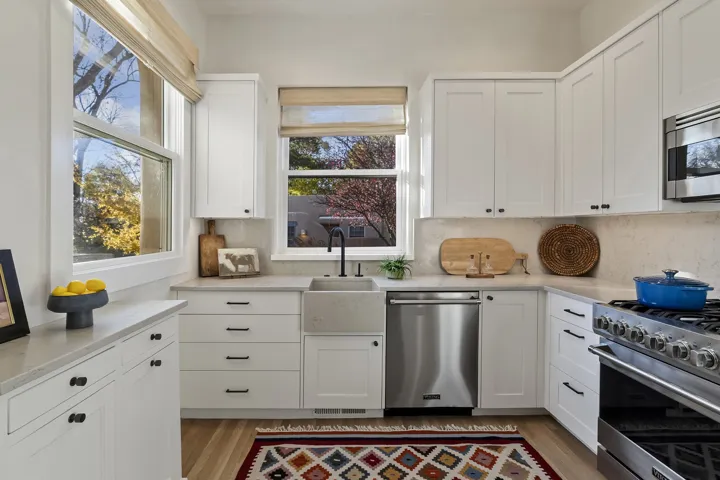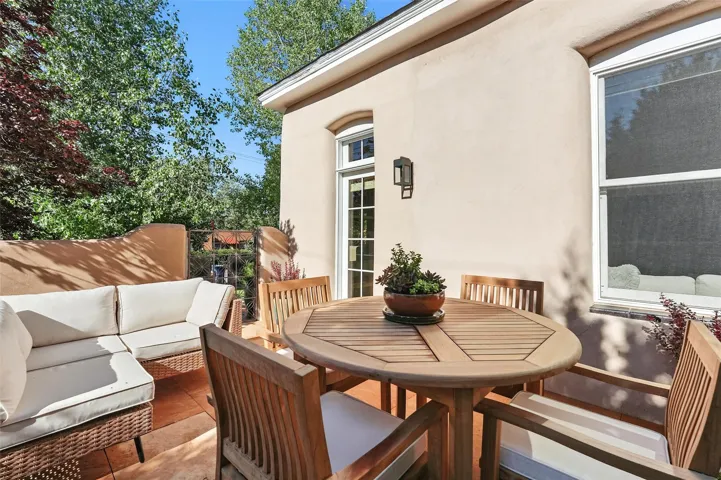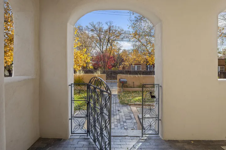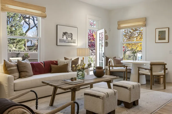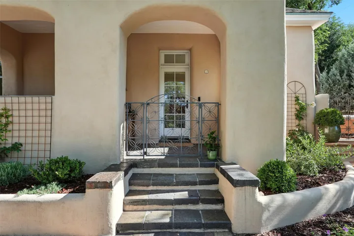 Just moments from Santa Feās historic Plaza and Canyon Road, this 3 bedroom, 2 bath home embodies refined Southwestern elegance. Masterfully reimagined by Bergman Vass Interiors, it blends contemporary sophistication with the warmth of Santa Feās timeless style. Every detail reflects exceptional craftsmanship with no surface left untouched! New energy-efficient windows and custom glass doors bathe rich hardwood floors in natural light. Recessed lighting highlights the homeās architectural beauty, while landscaped gardens, an upstairs deck and flagstone patios create a serene outdoor retreat. A hand-forged gate, custom fireplace screen, and luxurious closets complete this remarkable residence.