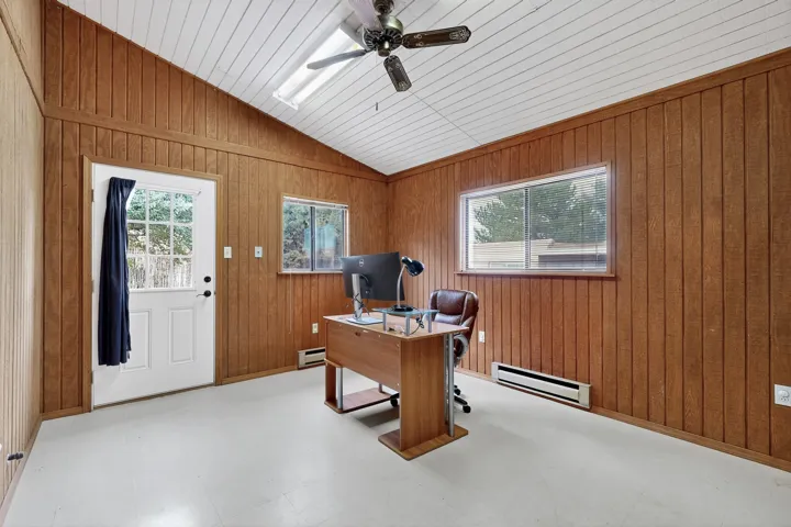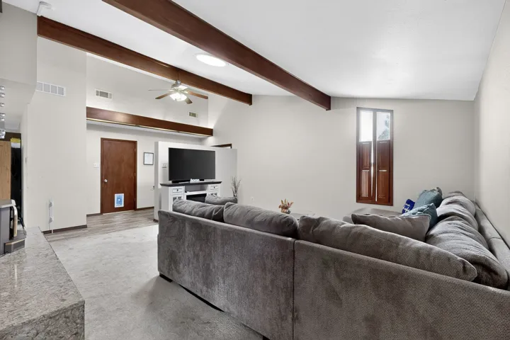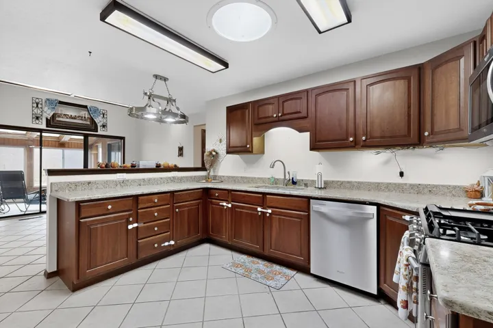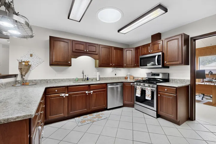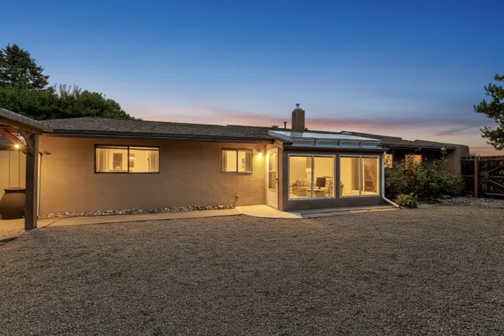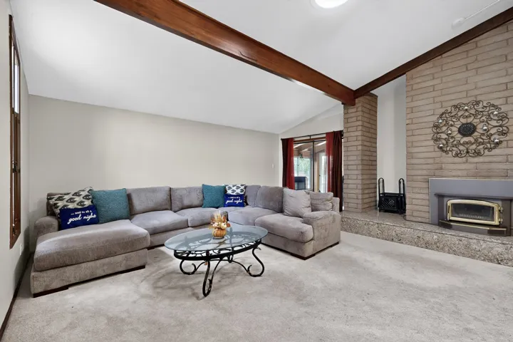This well loved single-family home features a spacious primary bedroom with an en-suite bathroom and walk-in closet, two additional bedrooms and a versatile bonus space ideal for a home office, gym, or whatever your heart desires. The kitchen is equipped with stainless steel appliances, granite countertops, ample cabinet space, and a dining area next to a finished sunroom, offering comfortable indoor/outdoor space for year round use. The skylights, refrigerated air, and an Aprilaire Air Purification System provide comfort throughout. The living room features tall ceilings, wood beams, and a wood burning fireplace to cozy up with. A newly replaced garage door motor was just added to the attached two car garage. Out front the curb appeal looks great and the backyard is spacious, low-maintenance, and thoughtfully sectioned. Conveniently located and move-in ready today! *Sunroom (157 sq ft) is included in total living square footage