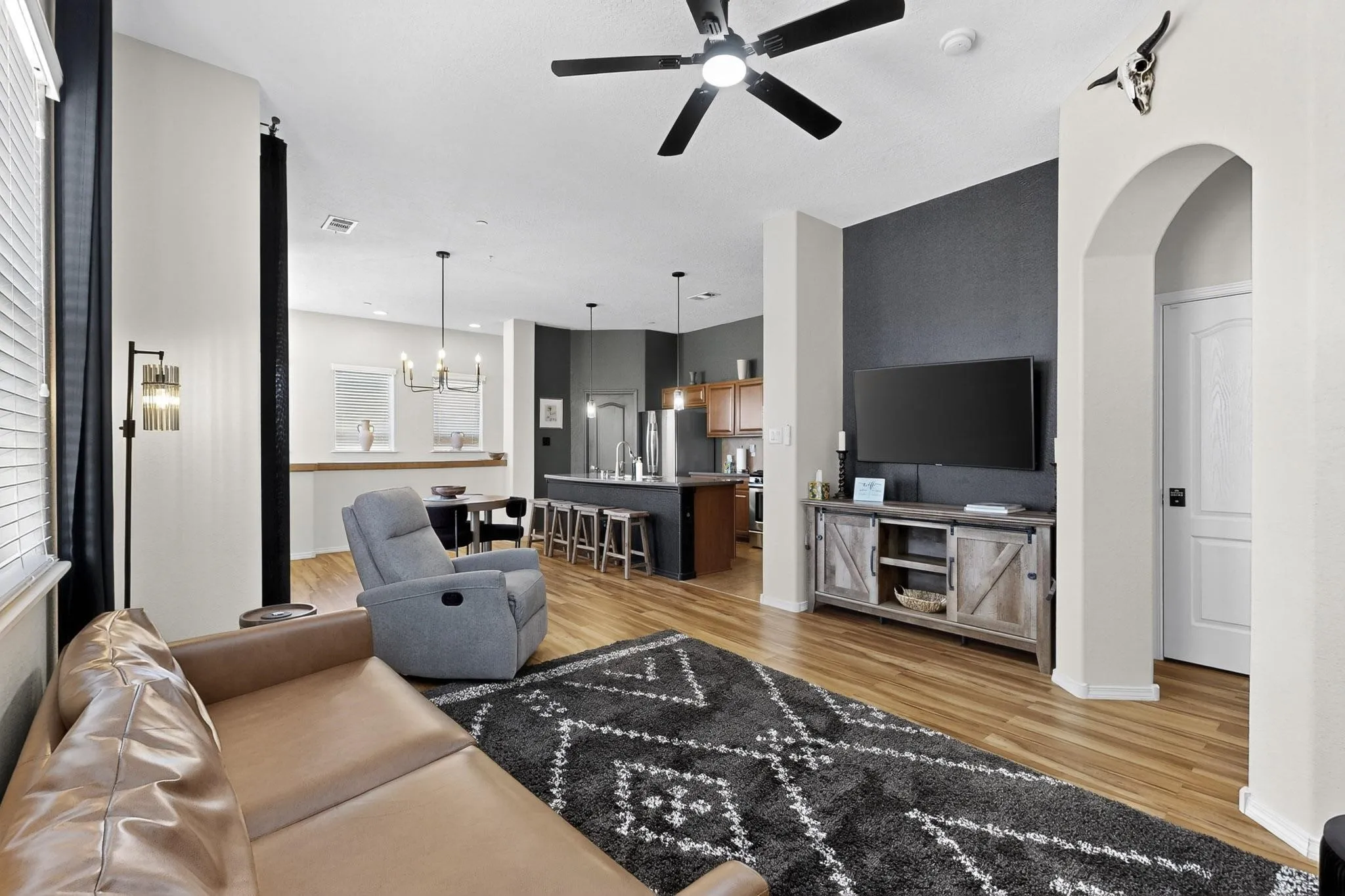 Welcome to this contemporary Southwest inspired home, which seamlessly blends modern updates, ample storage and stunning mountain views. Featuring a one car garage, 10 foot ceilings, updated fixtures, fresh paint, laminate treads on stairs and tile accents extending through the main living, kitchen and dining areas, this home creates an open floor plan for easy maintenance. The open kitchen showcases a generous island, pendant lighting and stainless steel appliances. Each of the generously sized bedrooms offer plush carpet, and the owner’s bath includes a well organized closet system, with additional shelving located in the second bath. Situated on a quiet cul-de-sac lot, located near restaurants, cafes, and cinemas, with easy access to I-25 and US-599. *** Furniture conveys***