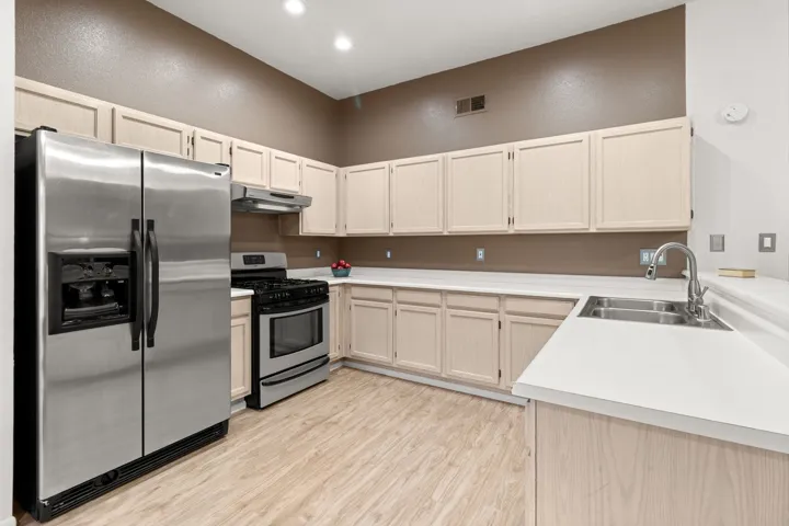Located on a private loop with minimal traffic, this home provides a peaceful setting with beautifully landscaped front and backyards. The spacious kitchen is perfect for the home chef, featuring high ceilings that flow into the open living area, creating an airy and inviting space for everyday living or entertaining.