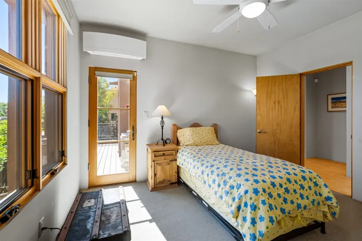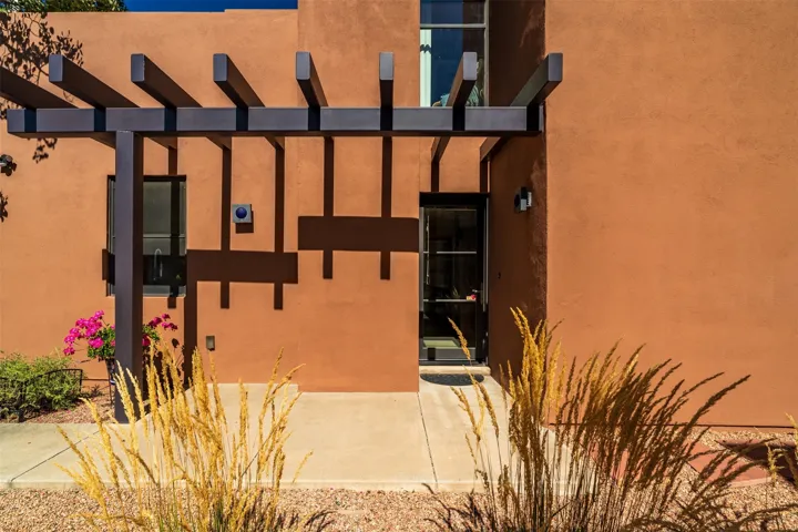 Located on the scenic Santa Fe River Trail, this exceptional townhome features contemporary architecture. Designed to maximize natural light and space, the home offers a serene retreat in one of the cityās most desirable in-town locationsājust minutes from the vibrant Santa Fe Plaza, Railyard, Famers Market, world-class restaurants, museums, and renowned art galleries. The nearby Solana Center features an organic market, dance studio, restaurants, and brewery. The Bicentennial Park is a short distance away and offers an outdoor pool, shady picnic areas, and tennis courts. Inside, you will find a thoughtfully designed open-concept floor plan. Polished concrete floors in the main level ground the space with a modern aesthetic, with double height ceilings, clerestory windows, and a seamless flow to the rear patio. A fireplace adds warmth and character. The flow from living to dining to kitchen creates an inviting atmosphere perfect for entertaining or relaxing at home. The primary suite on the main level is a peaceful haven featuring a large walk-in closet with custom built-in shelving and an en-suite bathroom. Upstairs, a loft-style bonus area provides flexible living optionsāideal for a den, creative studio, or media room. The two upstairs bedrooms each have a private balcony and walk in closets. This home is as comfortable as it is beautiful, with radiant in-floor heating and 5 mini-split units ensuring year-round climate control. The house boast passive and active solar – current owner has no electricity bills due to the owned solar panels. A two-car garage with extra storage space provides plenty of space for outdoor gear and everyday essentials. Whether youāre seeking a full-time residence or a low-maintenance Santa Fe getaway, this beautiful townhome delivers a perfect balance of modern design, elegant finishes, and unbeatable location. Here, youāre not just buying a homeāyouāre embracing the Santa Fe lifestyle.