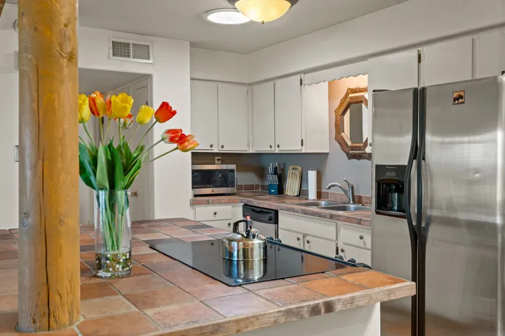 This delightful condo enjoys a premium location within the coveted Fort Marcy Compound. It’s single level with no steps inside, no steps to access the condo from nearby parking, with views of the sunset and city lights. It features a wood-burning kiva fireplace, skylights, an open floorplan, washer/dryer in unit, new roof (2024) and new heating and air-conditioning. Offered fully furnished, this one will not last long! Book your showing today!