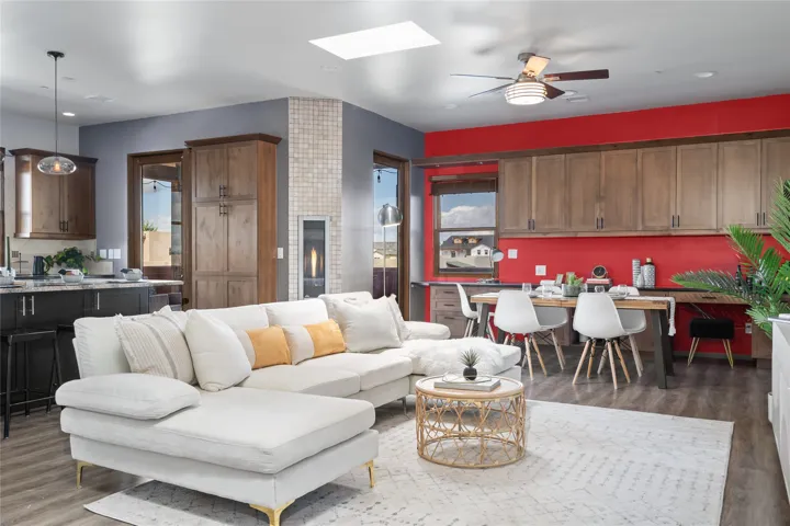 This modern corner-lot property in desirable Oshara Village offers the perfect blend of work and lifestyle flexibility. The ground floor features a spacious gallery/workshopāideal for an artist, creative professional, or small businessādivided into two rooms with expansive windows that flood the space with natural light. Additional highlights include a half-bath, workspace with a sink, durable concrete floors, and a lovely walled courtyard with flagstone, artificial grass, a pergola entertaining area, fountain, and mature landscaping, with direct access to a two-car garage.