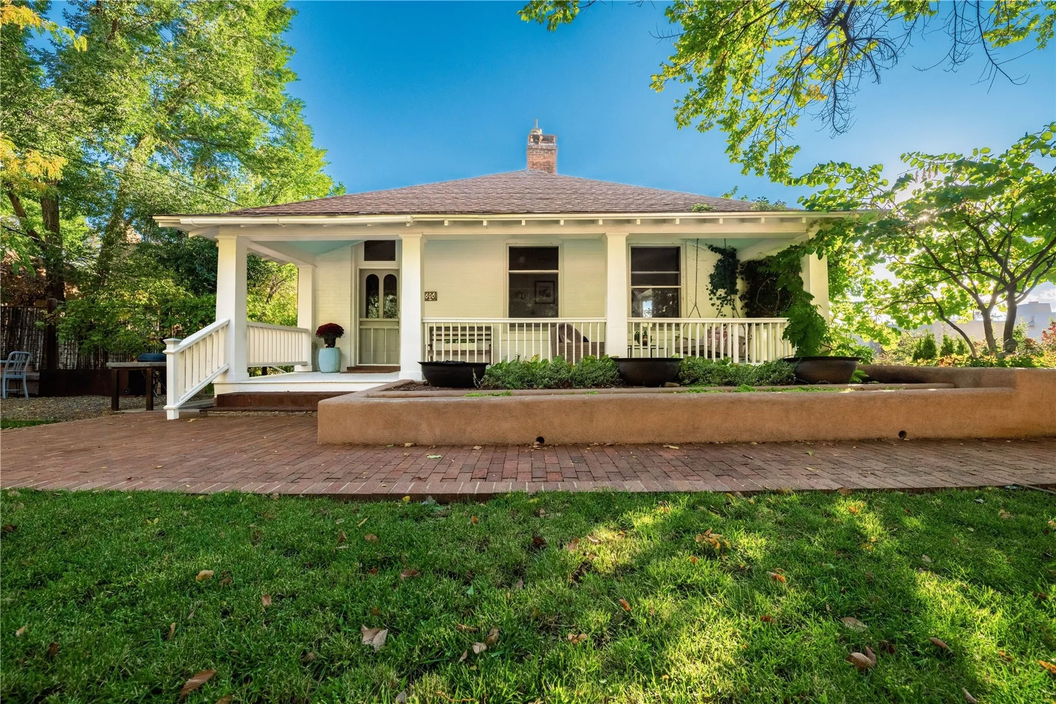 Palace Avenue is Santa Fe’s coveted crown jewel of streetsāpeople wait years for an opportunity to own a home here. Elegant, prestigious, and with that magical old Santa Fe feel. You’re moments from Canyon Road’s galleries, close to Santa Fe’s best restaurants, at the epicenter of the city’s internationally celebrated arts scene. Through the front gate, the first thing you see is the magnificent garden by landscape architect Alana Markle, whose work is featured in Sunset magazine and Su Casa. Mature trees offer cooling dappled shade, and the bubbling fountain provides a calming soundtrack. The generous front porch with a classic swing invites you to pauseāmorning coffee, evening wine and conversations. The adobe wall surrounding the home provides privacy. Fruit trees line the side of the property. Inside this treasure of a home, discover what makes it so special: soaring ceilings, incredible interior design, and light that pours through every room. The living room glows with natural brightness, hardwood floors gleam beneath those high ceilings, and a wood-burning brick fireplace that becomes the heart of winter evenings. Move into the kitchen designed for people who actually cookāa chef’s stove, upgraded appliances, and a Moroccan tile backsplash. The kitchen opens up to another living area with exposed brick and a picturesque bay window. The primary suite is your sanctuaryāhardwood floors, high ceilings, walk-in closet with built-in storage, and a spa-like bathroom with clawfoot soaking tub and natural light. Downstairs is cozy and inviting: a den with thick exposed stone walls and three bedrooms, each with generous storage. Outside, Alana Markle’s design continues to shineāthoughtfully curated spaces for al fresco dining, a hot tub for unwinding under the stars. Plenty of room to expand parking, plant a full garden, or even add a swimming pool. You’re not buying potentialāyou’re buying perfection already grown by one of the region’s most sought-after landscape architects.