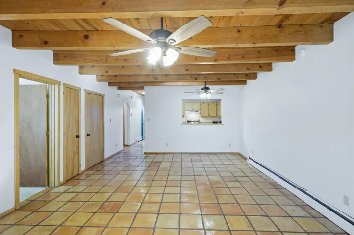 As the days grow cooler, imagine yourself relaxing by the warmth of a Kiva fireplace in this charming and well-maintained townhome in the heart of Santa Fe. This sweet 2-bedroom, 2-bath home offers timeless Spanish-style finishes, including classic Saltillo tile floors and hand stamped-painted wall tiles that add a touch of authentic Santa Fe character.