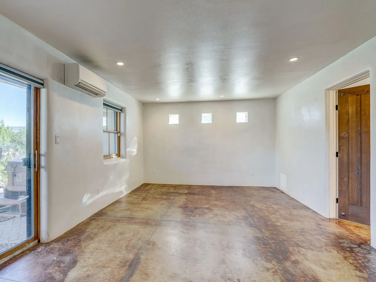 Private Santa Fe Retreat: Main House & Casita on a secluded 0.84 acre lot makes 801 Calle David the ultimate Santa Fe compound. This stunning property is a rare find, offering both a spacious main residence and a fully equipped, private 1 bedroom/1bathroom/1 car garage guest casita for unparalleled flexibility and privacy. Main Residence Highlights (2,559 Sq Ft): 4 Bedrooms with excellent separation, plus a bonus room that can be used as a media room or space to display your art or memorabilia. This rastra constructed home has beautiful diamond finished plaster walls, custom hardwood doors and a cozy two sided fireplace for Santa Fe’s cool evenings. Enjoy multiple outdoor living spaces, including two decks and two covered patios, one complete with a relaxing hot tub and some mountain views. The main house has an attached two-car garage and the casita has its own attached one-car garage. The casita (840 Sq Ft) can be a true home-away-from-home for visitors or a perfect rental opportunity. Located in a desirable Santa Fe neighborhood, this property masterfully blends the best of New Mexico’s timeless architecture with the space and amenities needed for modern living. The solar array is an added bonus taking advantage of Santa Fe’s average 300 days of sunshine to reduce your utility costs.