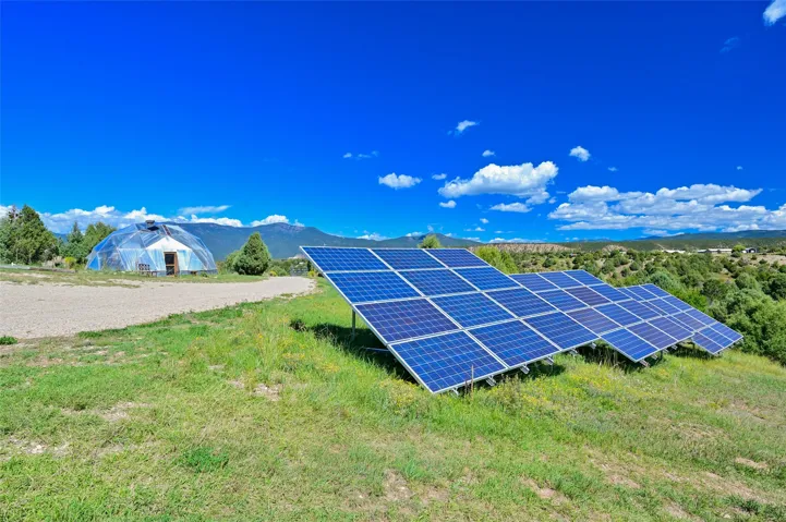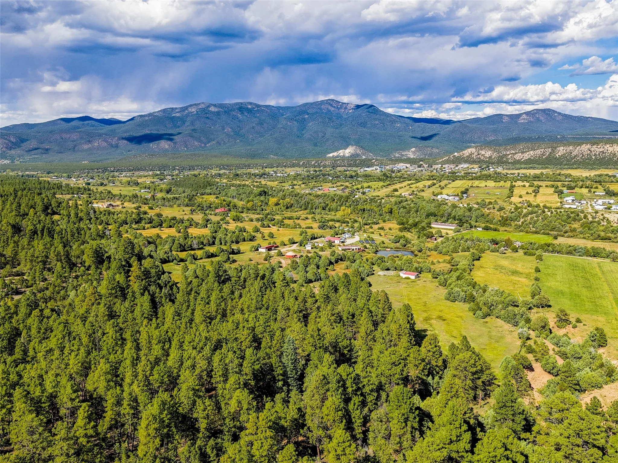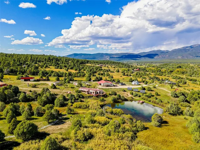 A truly rare 34-acre mountain retreat awaits, nestled in the Sangre de Cristo Mountains with stunning views of Jicarita Peak and Truchas Peaks. This exceptional, self-sufficient, and sustainably developed property is perfect for a small family business, equestrian estate, or serene retreat center.