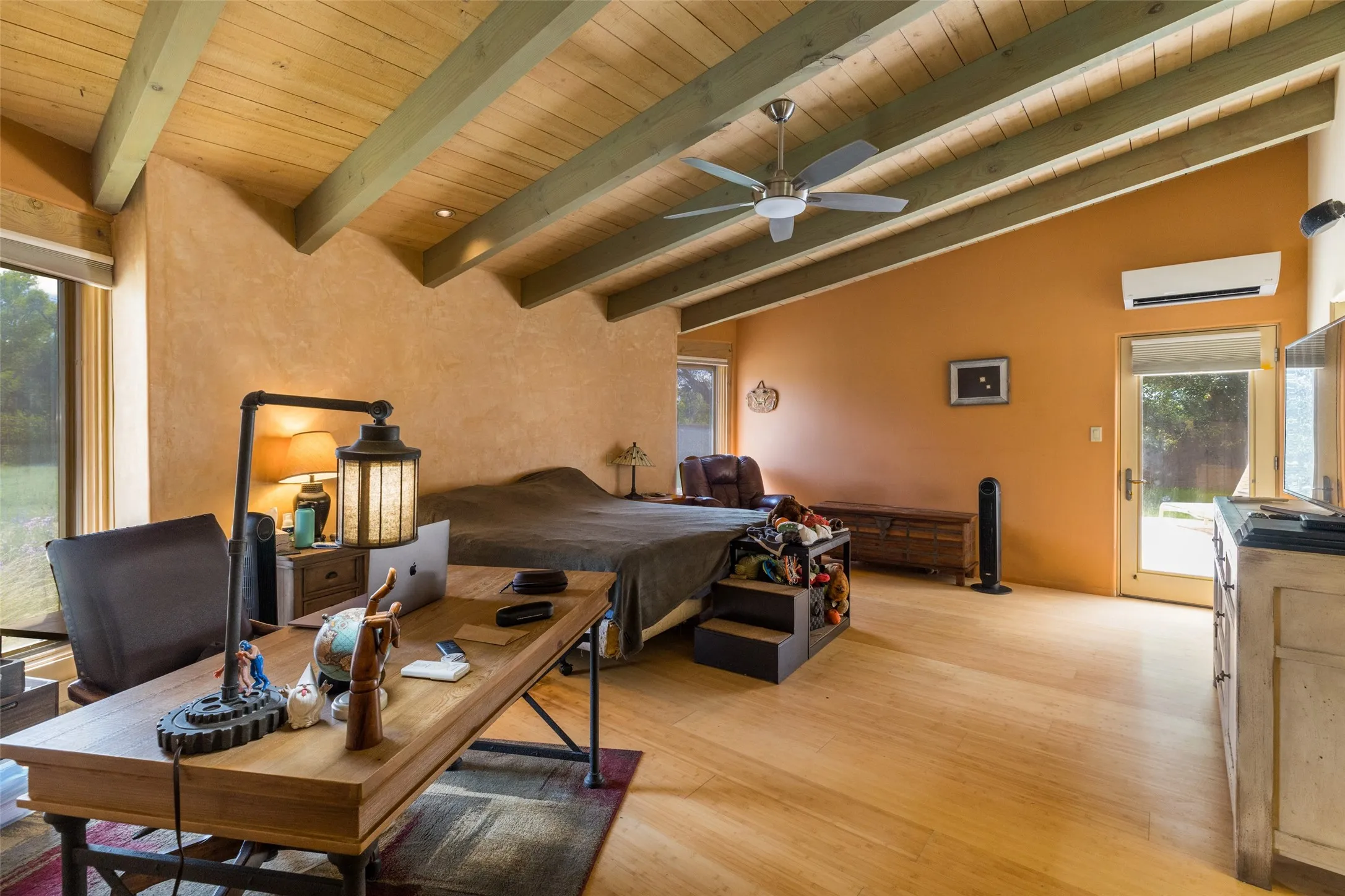 Located just 20 minutes to Los Alamos or Santa Fe, within the Nambe/Pojoaque greenbelt, this unique property sits on over an acre of land w/ WATER RIGHTS & a valve for flood irrigation. Enjoy mature cottonwoods, Osage orange, apple, apricot, & pear trees in a lush, meadow-like setting. The Trombe wall in the living area & bedroom utilizes passive solar principles! Other features include radiant floor heat, mini splits, a durable metal roof, bamboo & slate tile flooring, granite countertops, & wood-beamed ceilings. The open kitchen flows seamlessly into the great room, while the primary suite includes a huge walk-in closet & private patio. Use the 840 sq ft (80 ft X 21ft) heated garage space to park up to four cars or to create a unique studio or flex area. Don’t miss this opportunity!