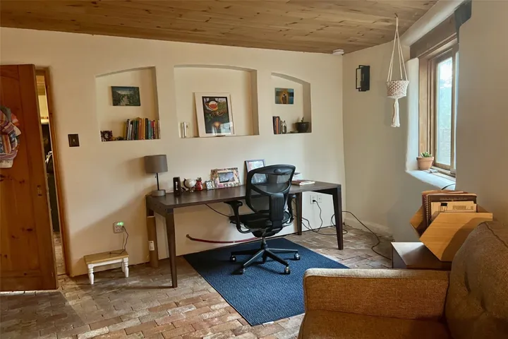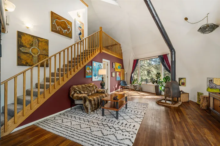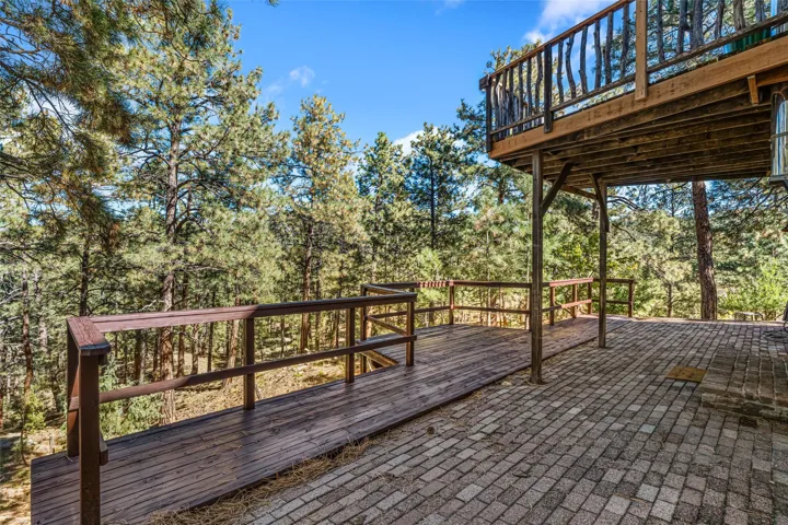 This mountain residence is located in a splendid setting on 2.7 forested acres in the tall pines off Old Santa Fe Trail. The three-level home offers a main house and guest house under the same roof and connected by a stairway internally, so it can be used as a single home or house and guest house. The main level consists of the living, kitchen, and dining rooms, primary bedroom, and bathroom. There are two enjoyable decks ā a very large deck off the living room and another off the dining room. The upper level has two bedrooms, a sitting area, and bathroom. The lower lever is the two-bedroom, two-bath guest house with an open-concept living/kitchen/dining area, and which also has another wonderful large deck. The outdoor living is delightful! The topography is gentle, affording a great deal of usable land. Experience a beautiful mountain lifestyle only minutes from the Plaza.
