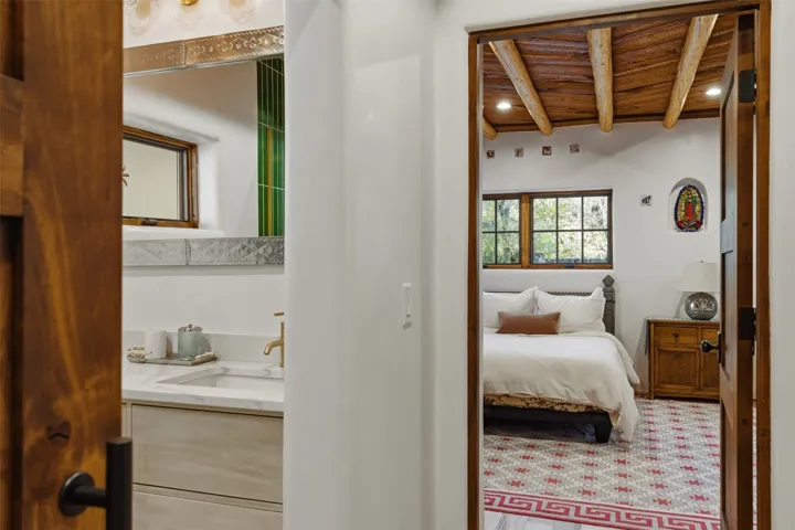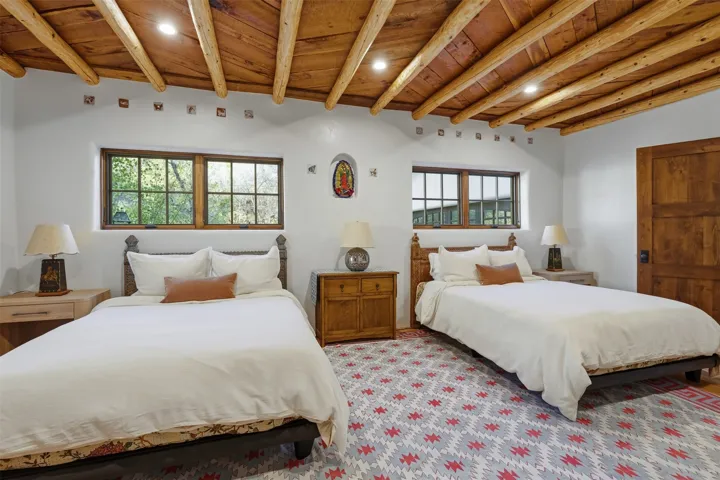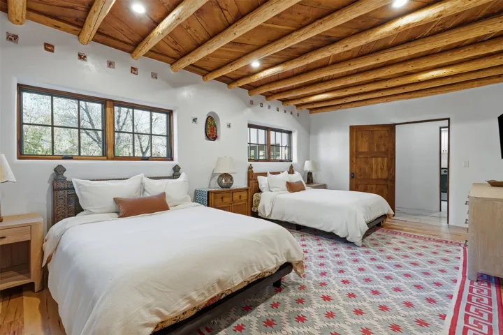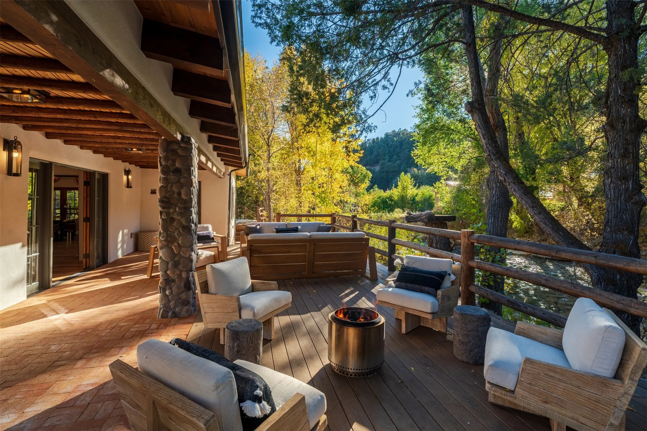 Welcome to 14 The Ledge, a rare offering in the heart of Pecos, NM, where tranquility meets luxury. This exquisite 2,439-square-foot estate is nestled on 5.35 acres of prime Pecos Riverfront, boasting 362 feet of private river access. Perfectly remodeled, this home features three ensuite bedrooms, each offering a private sanctuary for relaxation. The chefās kitchen features a large island, Sub-Zero fridge, under-counter ice maker, and Viking Tuscany range, dishwasher, and hood beautifully accented by smooth plaster walls and artisan tile throughout.