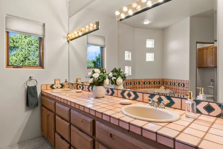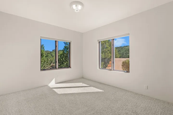 BEAUTIFUL ALTEZA ESTATES HOME WITH ADJACENT LOT AVAILABLE! Sited on one of the highest lots in this gated subdivision, this home offers truly astounding mountain views with the lot in front available for sale to protect the views. This one-owner home offers three bedrooms, three bathrooms plus office/studio space. SINGLE LEVEL – NO STEPS. LOT IS PRICED AT 145K. Custom hard-carved entry door with diamond plaster in the public areas. NEW TPO ROOF in 2020. New stucco in 2016. Kitchen has pretty custom cabinetry with lighting, ample pantry space and breakfast area. Dining room has built-in buffet. Spacious primary bedroom has vigas and beams and a good-sized walk-in closet. Landscaped and walled front courtyard on a drip system. Proper laundry room with sink and storage – washer and dryer convey with the property. Two-car finished, direct-entry garage with workbench and good storage. The vacant lot in front of the property protects the amazing views and is 2.57 acres. Seller prefers to sell them together. THIS HOME HAS BEEN PRE-INSPECTED AND MOST REPAIRS ARE COMPLETE. SPLIT SYSTEM FOR HEAT AND A/C IS IN PROCESS.