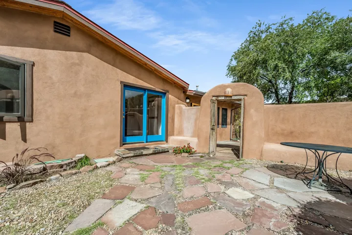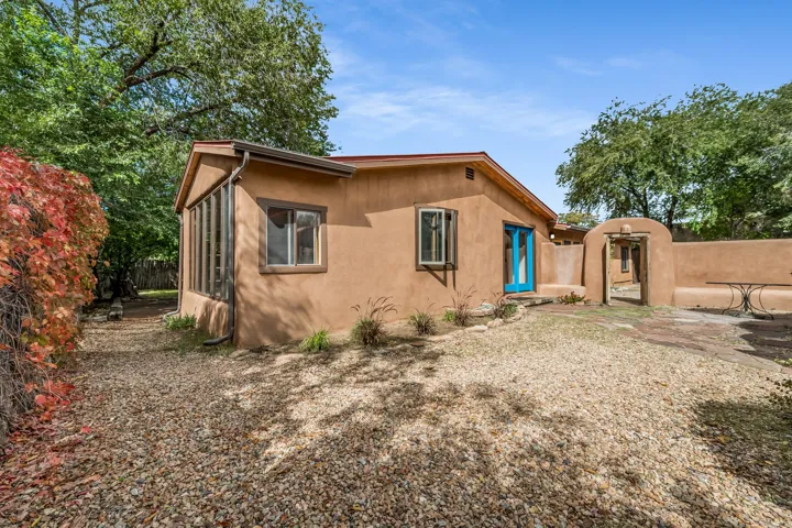 This quintessential Santa Fe style property offering Kiva fireplace, willow doors, Talavera and Saltillo tile, nichos, a walled courtyard, and off-street parking is tucked away in the much sought after Railyard Arts District. The setting is peaceful and quiet yet only a quick 5 minute jaunt to The Violet Crown, Farmerās Market, park, outdoor concerts, coffee shop, pubs, restaurants, and the vibrant vibe offered along Guadalupe Street! About a 15 minute walk to The Santa Fe Plaza where you will find work shopping, class dining, and galleries along with stellar museums. Walking and cycling trails are minutes away making this the perfect urban home. One can even hop on the train for a ride to Albuquerque! Opportunities Abound for this property which features a home with attached guest house. You can live in one unit and rent the other or rent them both! There is even room to add a casita! Easy access to St. Francis Drive is a plus for those who commute to Los Alamos! Both units offer office space for those who work from home. A Must See!