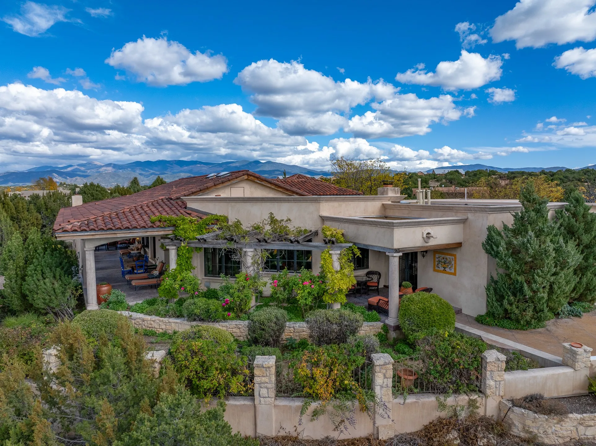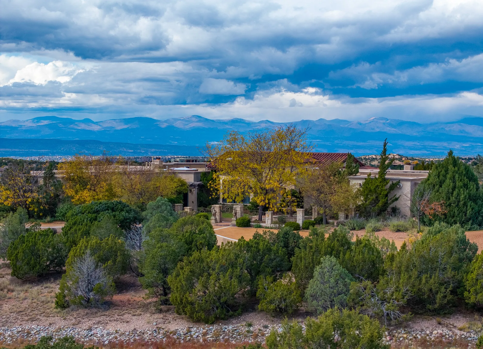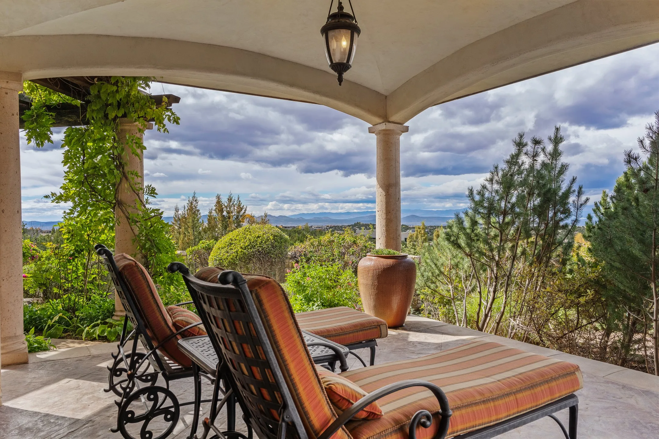 For those drawn to the romance of Italy, this extraordinary residence captures the essence of a Tuscan villa translated beautifully into the high desert landscape of Santa Fe. Nestled on 2.5 acres in the coveted Sundance Estates, this home with 4 bedrooms plus an office, 4.5 baths, and a 3-car garage offers 5,013 square feet of refined living, crafted with exquisite detail and timeless materials. Beyond stately wrought-iron gates, cupid sculptures and a stamped and colored concrete drive lead to a grand arrival with limestone walls, a graceful fountain, and hand-hewn double doors. Inside, rich walnut and travertine floors create a harmonious blend of warmth and sophistication. Diamond plaster walls, coved plaster ceilings, and rustic wood trestle beams evoke the artistry of old-world Europe, while expansive windows and French doors frame breathtaking mountain and sunset vistas. The chefās kitchen is a showpieceāadorned with alder cabinetry, granite countertops, a Wolf range, a Subzero refrigerator, a built-in Miele coffee center, and a wine cooler. Here you’ll be romanced by a generous island, casual dining area, and adjoining family room with a fireplace, creating an inviting central gathering space. The kitchen and living room open to a deep covered portal designed for alfresco entertaining, featuring an outdoor kitchen, limestone fireplace, and rose garden.