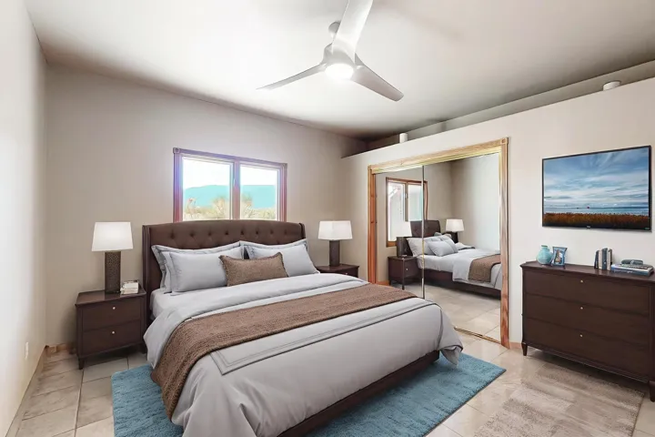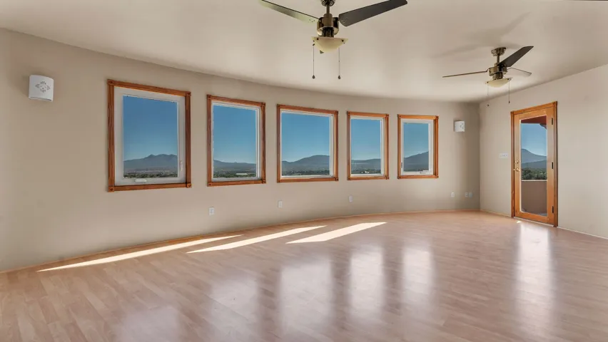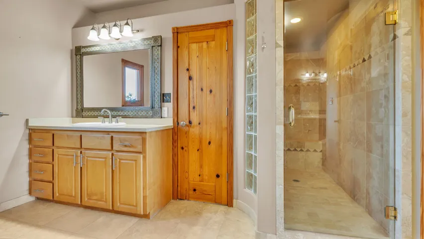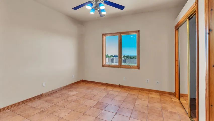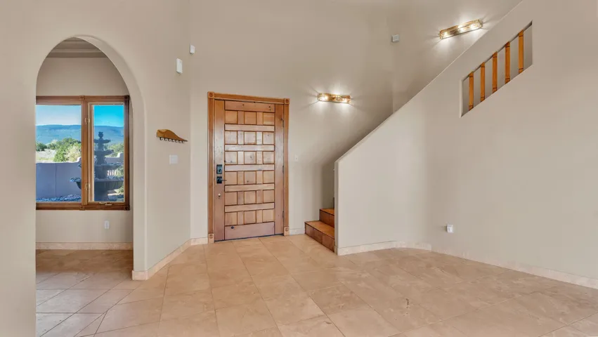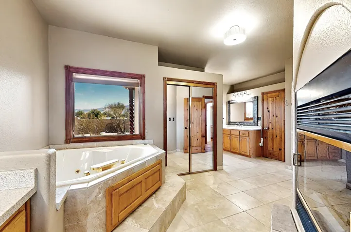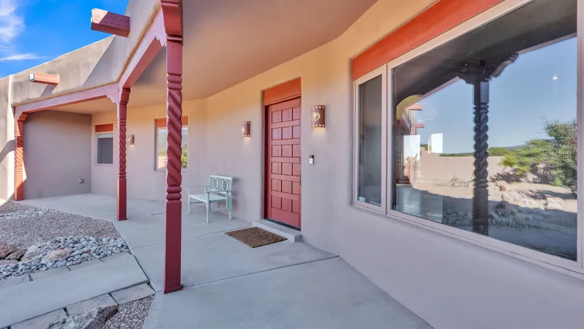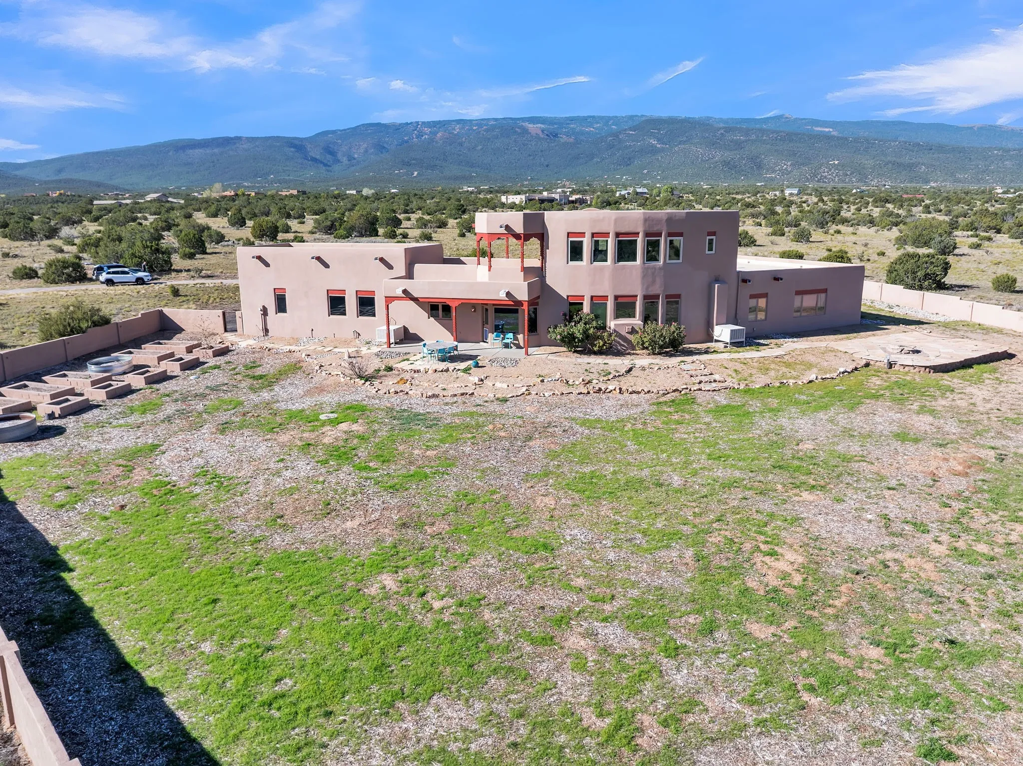 Situated on 10.57 acres in the prestigious San Pedro Creek Estates, this impressive 4,000+ square foot home offers refined comfort, privacy, and spectacular views of five separate mountain ranges. Featuring 4 bedroomsincluding two primary suites and 4 bathrooms, this thoughtfully designed home blends elegance with everyday functionality. The spacious great room showcases a gas log fireplace and sweeping views for miles, creating a warm and inviting central gathering space. The downstairs primary suite features a large walk-in closet and a generously sized bathroom, while the upstairs primary suite includes a private balcony the perfect spot to take in the serene landscape. Enjoy cooking in the large kitchen, complete with granite countertops, a built-in gas stove, ample cabinetry, a nice-sized pantry, and access to a spacious workshop and three-car garage perfect for hobbies, projects, or extra storage. The home is equipped with efficient radiant heat and features travertine tile throughout the downstairs, adding both beauty and functionality. A spacious utility room includes a sink and plenty of storage. Outside, you’ll find a large walled-in backyard, ideal for relaxing, entertaining, or pets. The property also includes private gate access (key fob provided) to the Golden Open Space Los Duendes Trail, offering opportunities for hiking, biking, and horseback riding. Ideally located, this home is just 32 miles from Albuquerque, offering all the amenities of city living, 21 miles from Madrid, known for its artistic charm, and 50 miles from Santa Fe, celebrated for its rich culture and dining.