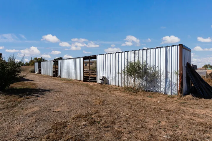 Outside, youāll find everything you need for a working mini-ranch or hobby farm ā stables for eight horses with water and electricity, an arena, and ample storage for tack, tools, and feed. The private well ensures reliable water, and thereās space to expand your gardens or add more animal pens. Currently, the homestead is happily shared with turkeys, chickens, and mini goats, all thriving under the wide New Mexico sky.