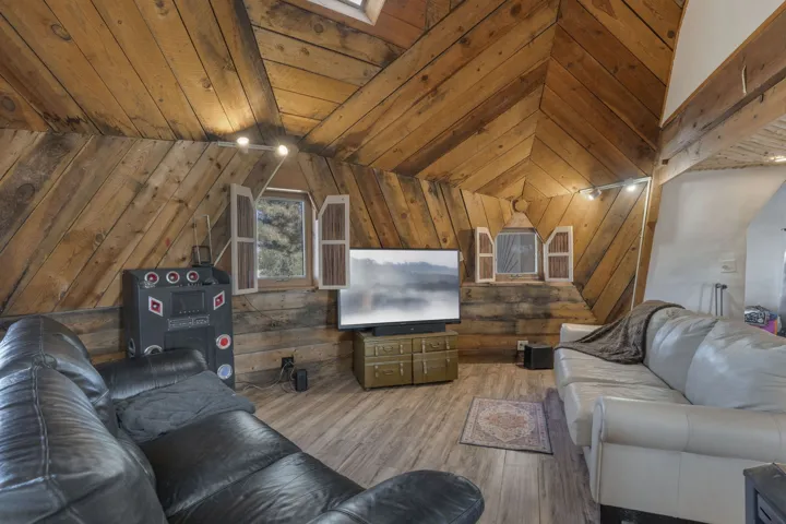 Step inside and feel the warmth of handcrafted adobe walls, the wooden geodesic dome, exposed vigas, and natural wood and Saltillo tile floors. The primary bedroom features a corner kiva fireplace, creating the perfect cozy retreat on cool evenings. The spacious kitchen is well equipped with stainless steel appliances and plenty of room for gathering, cooking, and sharing meals made from your own garden bounty.