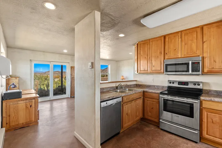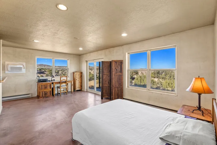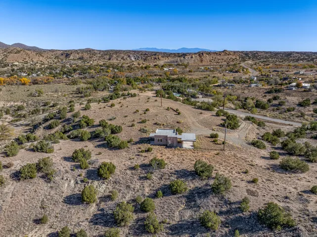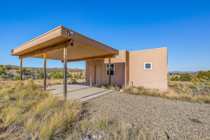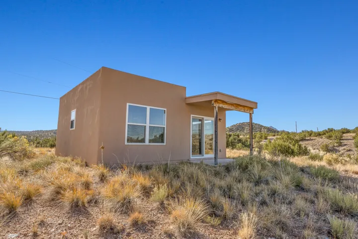 Thoughtfully designed small house on almost 5 acres. This 562 square foot, studio style home proves the adage that good things come in small packages. On a flat hilltop above Goldmine road, this home takes in views of Cerrillos and the Galisteo valley, as well as the Sangre de Cristo mountains. With stainless steel appliances, ample light, and stained concrete floors, the home feels more spacious than it’s square footage would suggest. Designed with expansion in mind, it would be easy to add a bedroom, and the property is sold with two lots, a buyer could live in this home while building on the other lot. On septic and community water, within walking distance of Cerrillos and a short drive to Santa Fe. House has been smoked in and will need paint.