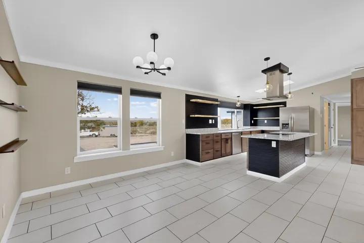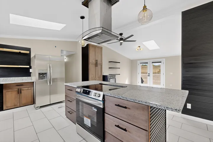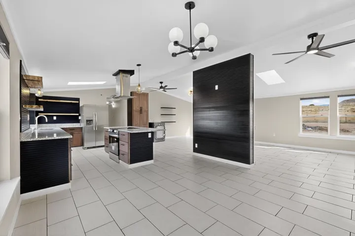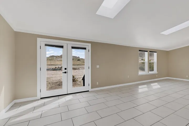 This beautifully remodeled 3-bedroom, 2 bath home offers modern comfort in a peaceful rural setting with spectacular views of the Jemez Mnts. Revel in the natural light that comes in through the 3 skylights. Enjoy a bonus room perfect for a home office or hobby space. Recent upgrades include new windows, new blinds, new roof, new tile flooring with plush carpet in the bedrooms, new lighting, and a new furnace and refrigerated air unit and new hot water heater. The kitchen has been thoughtfully redesigned with custom cabinetry, granite countertops and a new stainless appliance package.