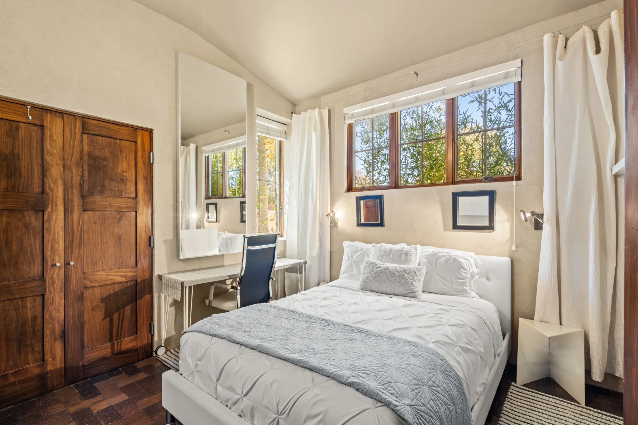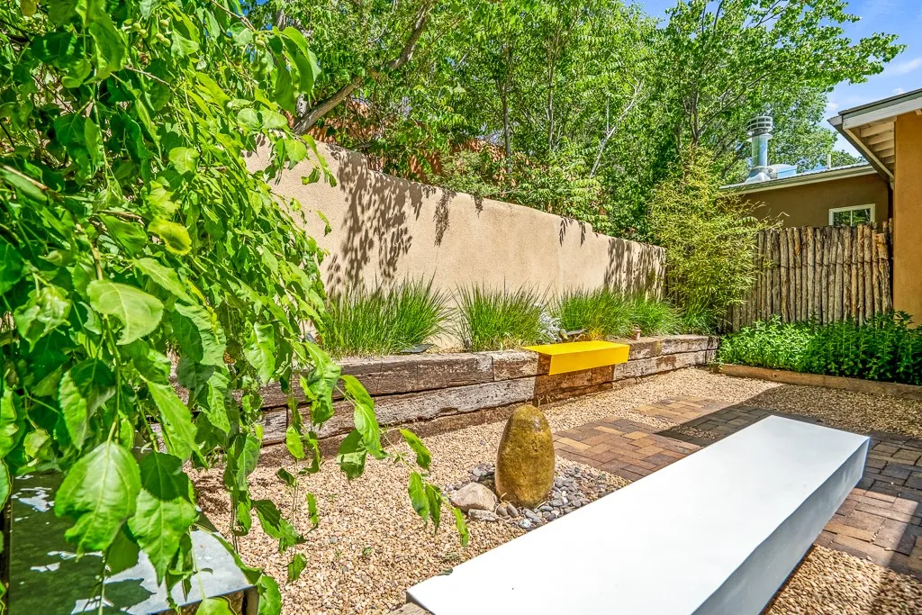 Unique Contemporary condo in one of the most convenient Santa Fe locations. You can walk to the DeVargas Mall, the historic Santa Fe Plaza or the Railyard district in just minutes !! Constructed in 2009 by award winning architect Andrea Caraballo, this 2 bedroom 2 bathroom condo has a level of fit and finish you just don’t find in most condos. Old world Italian stucco meets new world modern stainless steel appliances, high end cabinets, Silestone countertops, gorgeous brick pavers and unique lighting. This property has in-floor radiant heating, central air conditioning, built-in sound system, wood / gas fireplace and a large concrete basement for storage. There are 2 outdoor living spaces with comfortable seating and a beautiful water feature. Did I mention it has 3 dedicated parking spaces? Combining the superior architectural design elements, the abundance of storage in every room, the lovely outdoor patios and the modern new mechanical systems… this is a rare beauty just waiting for the next owner.